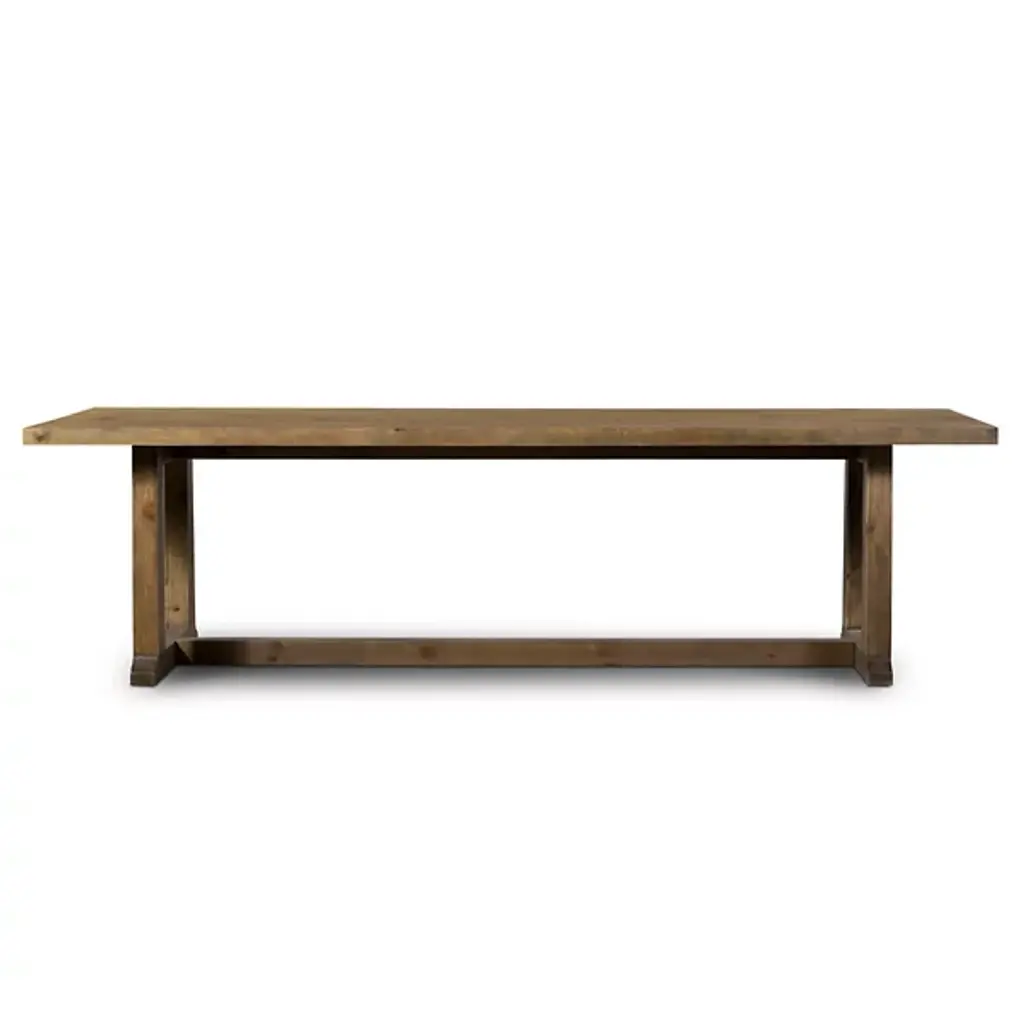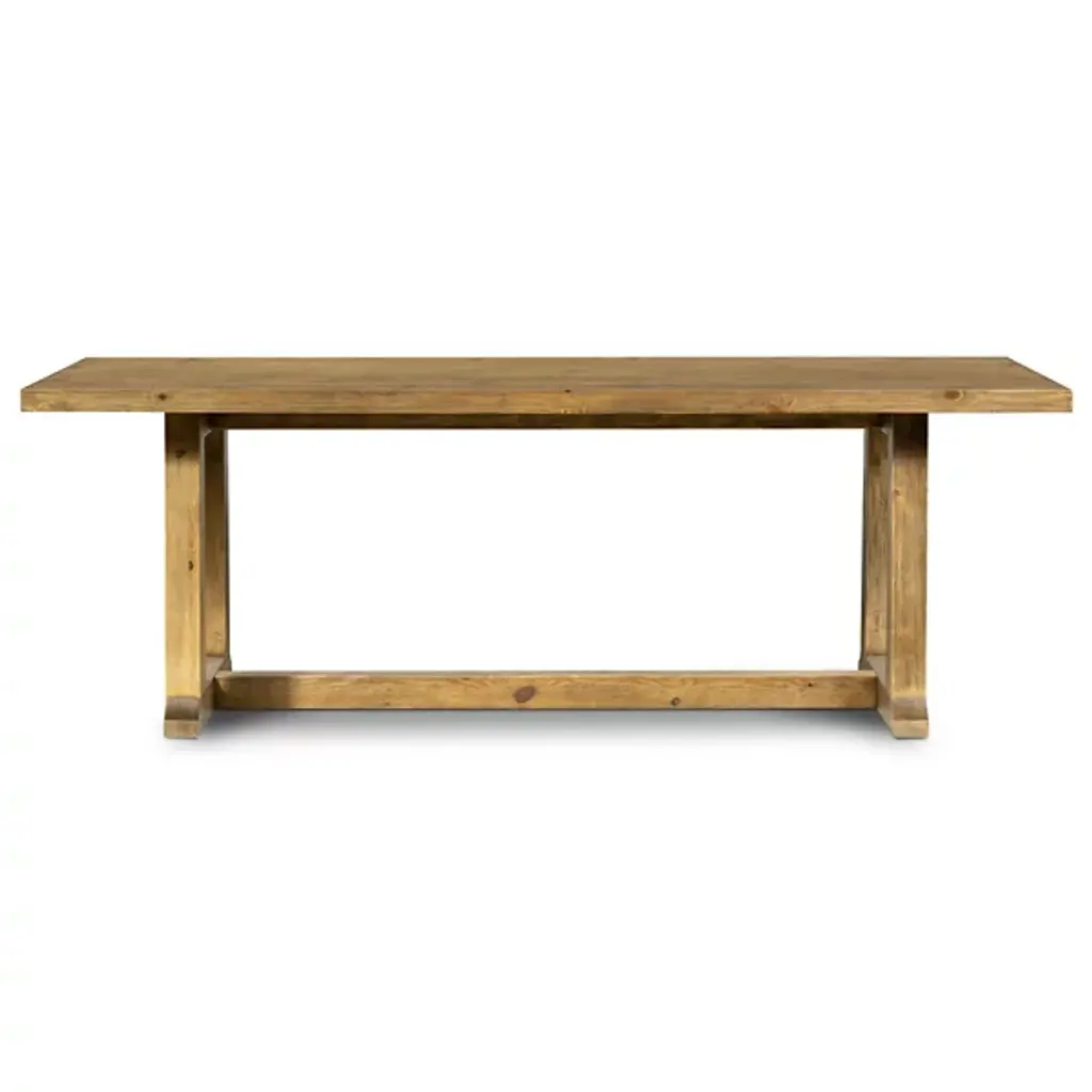The Otto Dining Table from Four Hands boasts a linear design. Its flat surface forms the backdrop for your culinary creations, offering ample space for dishware. The open-frame legs add a touch of elegance and create a lovely silhouette that captures the attention of your guests. With a rectangular tabletop, this table is designed for functionality. Made from solid pine, Otto merges transitional style with durability, making it a handsome centerpiece for your dining area.