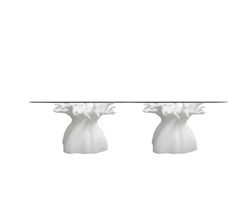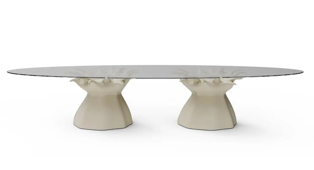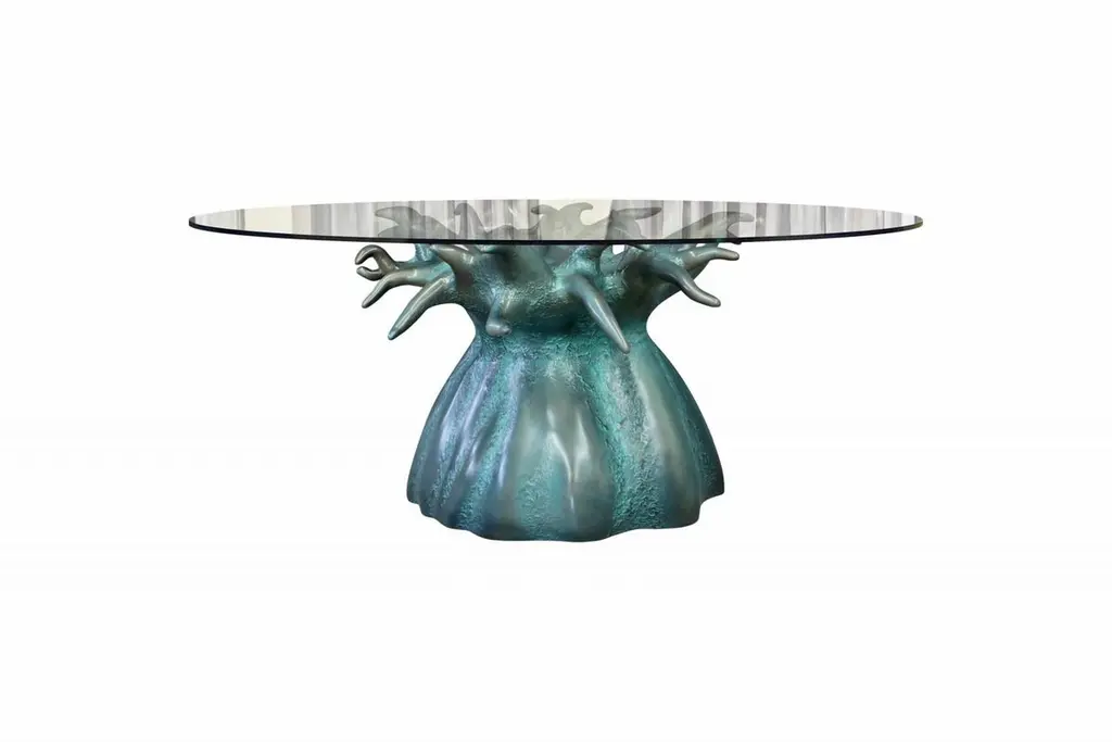 The artist is inspired by tree branches that seem to emerge from the floor. The organic structure of the branches, which are washed to the surface, can support an oval glass plate up to 13.5 x 5 Ft with 1/2" thickness. The Glass top is not included in the listing. Custom sizes available upon request. We do our best to expedite production and to ship and deliver product within the listed lead time, however current lead times might be longer due to global shipping backlog and delays. These delays are out of our control and cannot be a reason to cancel an order.