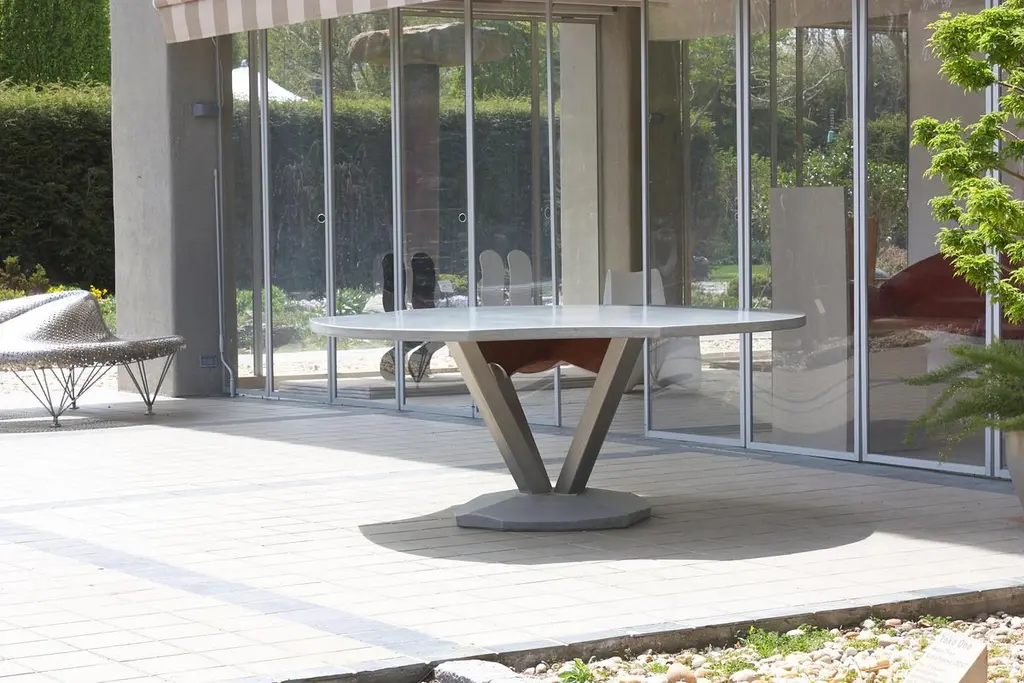 Outdoor Concrete Dining Table With Organic Top By Nico Yektai