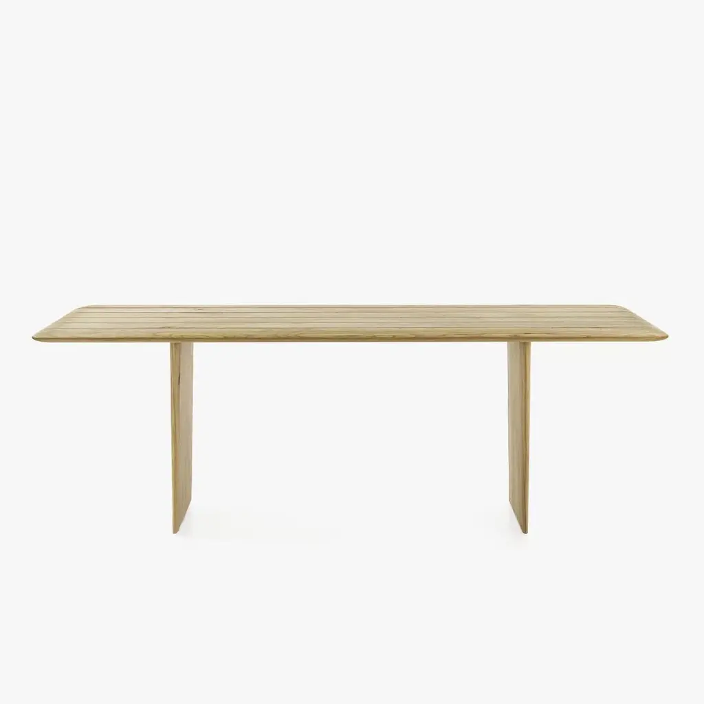 The table is made entirely from solid scented cedar wood, with smooth, rounded sides. Its top and legs have a slender appearance due to the beveled and rounded edges, giving it a graceful, flowing design. The tabletop is composed of individual solid wood planks, assembled without glue. Natural cedar makes this table suitable for outdoor use.This product is crafted from solid cedar wood. Due to the natural properties of solid cedar, the following changes may occur over time, especially when placed outdoors:1. Cracks, splits, and movements in the wood are expected and should be viewed as a normal part of the material’s aging process rather than a defect. If used outdoors, these movements will be more pronounced and frequent. 2. When exposed to outdoor elements, cedar will gradually turn grey due to UV exposure and moisture. This transformation is unavoidable and occurs naturally over time.3. The appearance of mold spots or surface deposits is a natural reaction of cedar, particularly when stored in transport crates for extended periods, or covered for too long. If mold spots appear, follow these maintenance steps: - Use the provided brush to remove surface residue.- Wash the affected area with water.- Allow the piece to dry in a well-ventilated area.4. Cedar wood contains natural resins, which may surface over time, particularly on the top or bottom of the product. To prevent staining, avoid placing cedar furniture directly on carpets or soft surfaces that restrict airflow.General Care Recommendations-Keep cedar products in dry, well-ventilated spaces.-If used outdoors, understand that significant aging effects will occur, including color fading, deeper cracks, and more pronounced wood movement.By purchasing and using this product outdoors, the buyer fully accepts these natural transformations as part of the wood’s aging process.Protective water resistant and mold resistant covers are available for an addition cost.We do our best to expedite production and to ship and deliver product within the listed lead time, however current lead times might be longer due to global shipping backlog and delays. These delays are out of our control and cannot be a reason to cancel an order.Our pricing includes all costs for international shipping to the U.S., as well as duties and customs clearance fees. Please be aware that local delivery within the U.S. is not included. We offer white glove, front door, and warehouse delivery options. For shipments outside the U.S., kindly reach out to us for a detailed quote.
