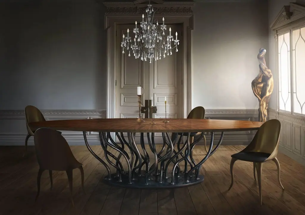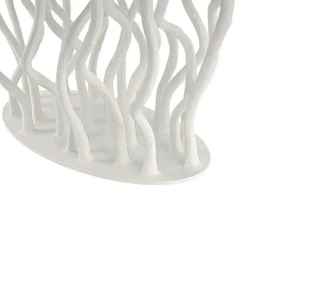 Handcrafted of resin reinforced with fiberglass and lacquered in white with matte finish.The artist is inspired by branches that seem to protrude from the floor. The organic structure consists of reinforced acrylic resin. All branches and the table top are painted white with a matt surface and sealed for outdoor use.Dimensions (in): 114.2 x 51.2 x 29.5Weight: 230 lbsSeats: 10 to 12.We do our best to expedite production and to ship and deliver product within the listed lead time, however current lead times might be longer due to global shipping backlog and delays. These delays are out of our control and cannot be a reason to cancel an order.