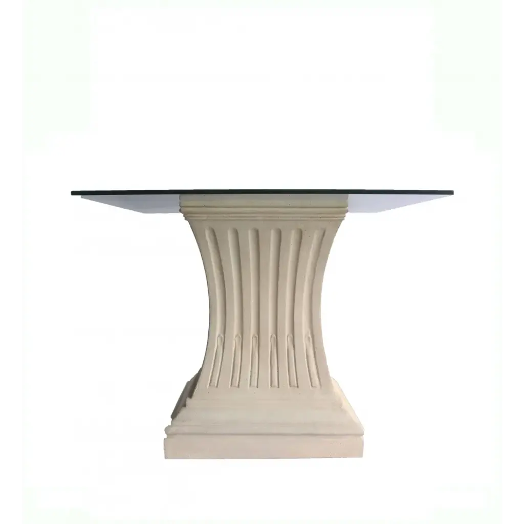 The simplicity of a classic design allows the Legacy 36" Square Dining Table to be matched with a variety of dining chairs to blend with any décor. The simple curves complement any design and will never go out of style. Constructed of cast limestone, this table base is sturdy enough for a variety of sizes glass table tops to be used indoor or outdoor.