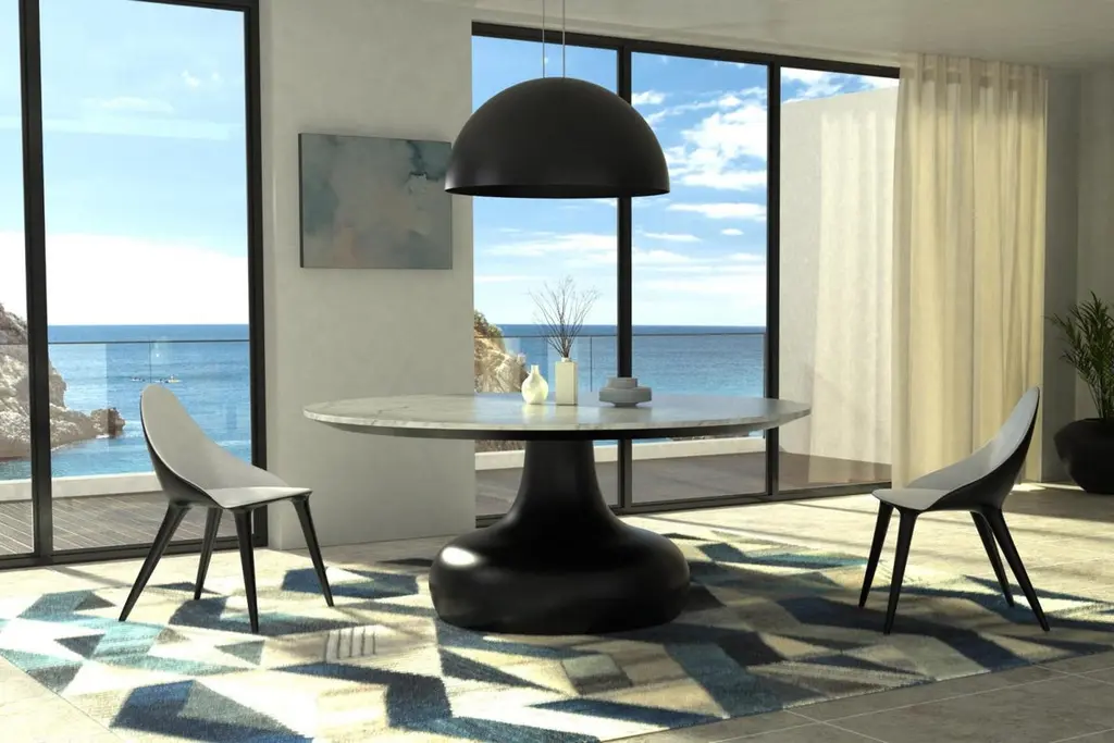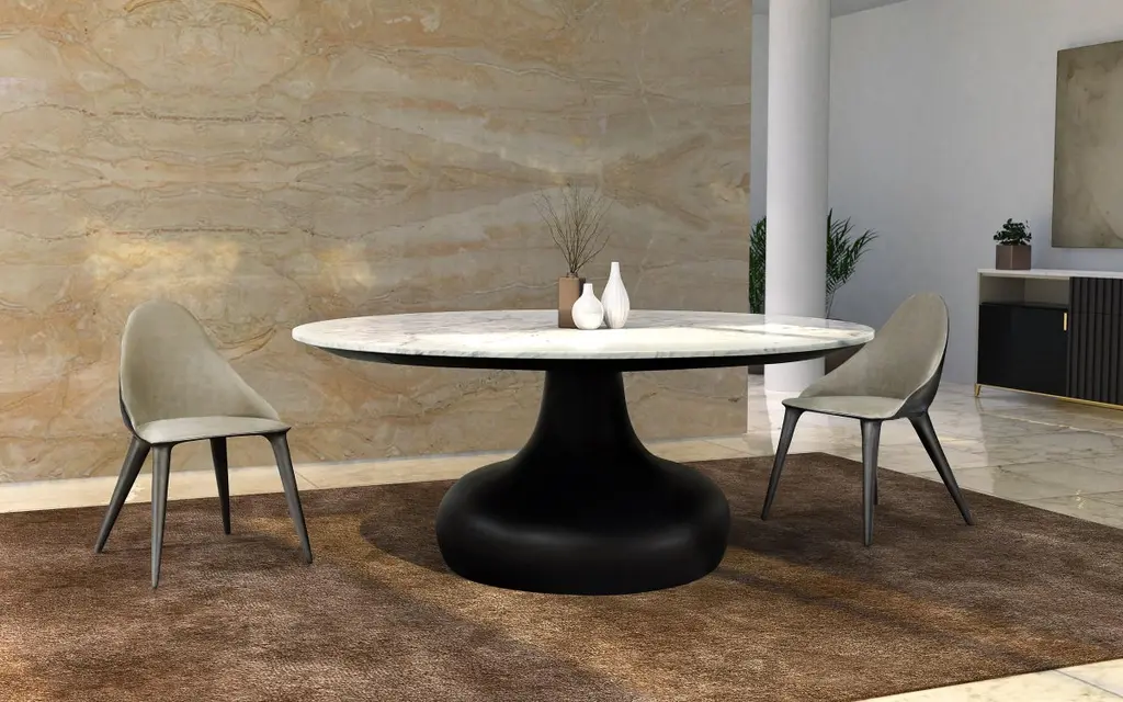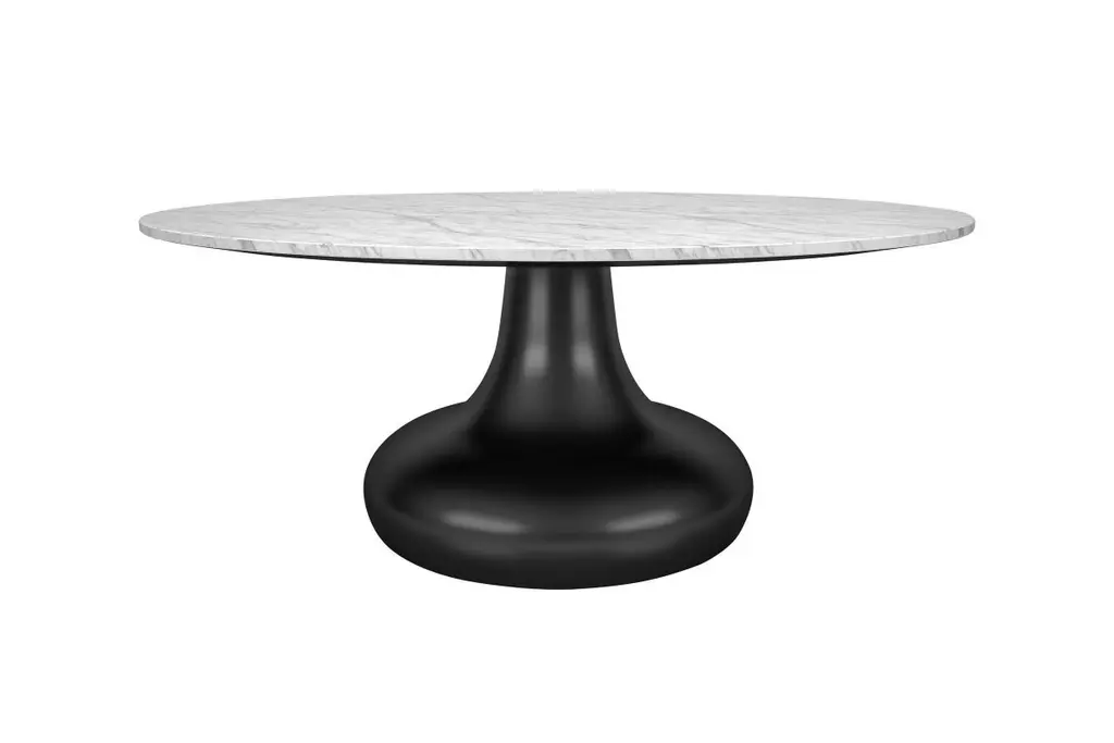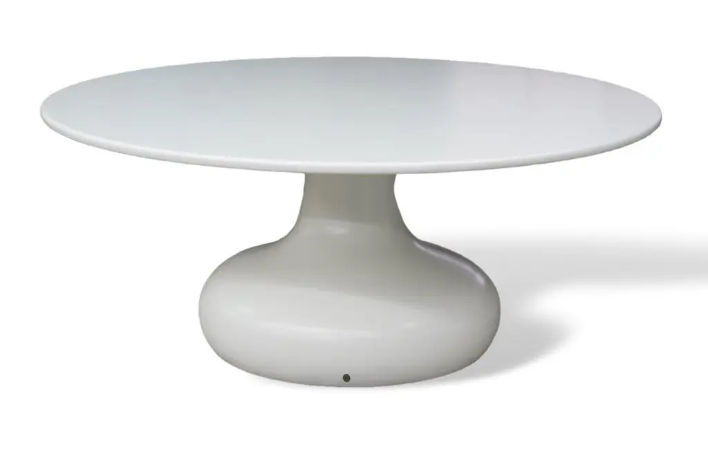 Handcrafted of reinforced resin and lacquered in white ref. RAL "9227" matte.Unlike concrete, reinforced resin is forceful enough to withstand extreme weather conditions without cracking or changing color.Dimensions: Ø 70"x H 29.5".This piece is offered in any RAL color, standard finishes and select metallic finishes, contact us for enquire about finish and size customizations.Tabletop is offered in wood and marble upon request.Custom made cover is available upon request. We do our best to expedite production and to ship and deliver product within the listed lead time, however current lead times might be longer due to global shipping backlog and delays. These delays are out of our control and cannot be a reason to cancel an order.