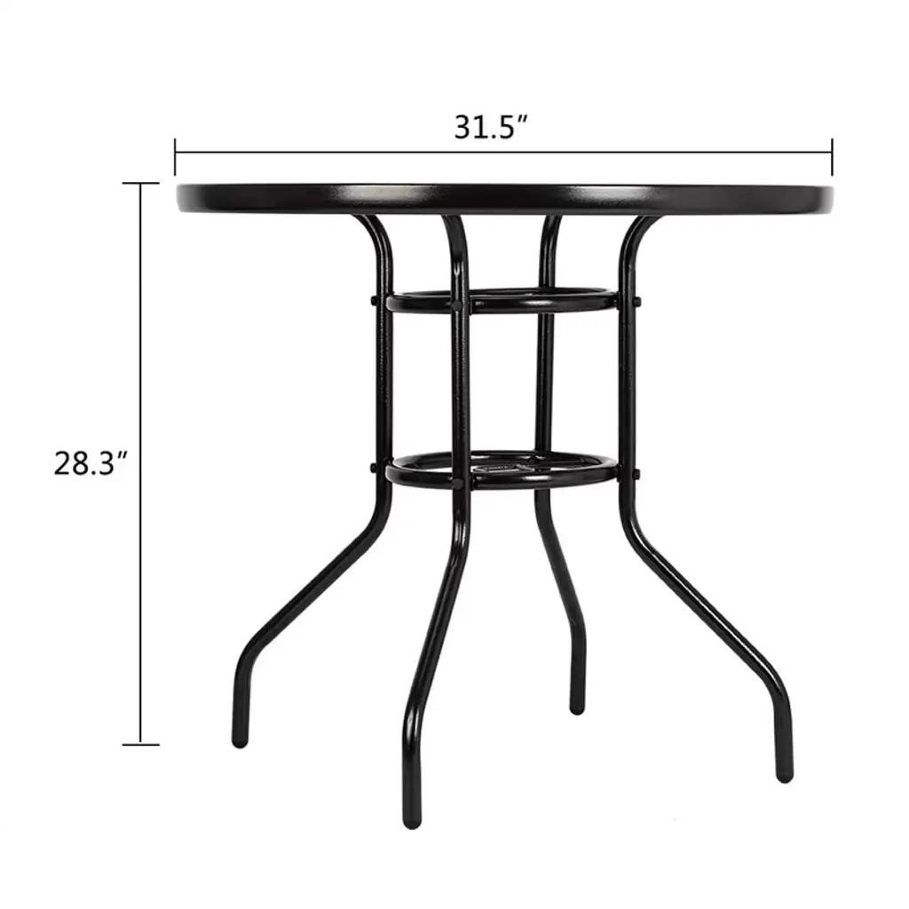Outdoor Round Dining Table Weather-Proof Yard Garden Tempered Glass Table for Outdoors Indoors(80 X 80 X 70cm) Black