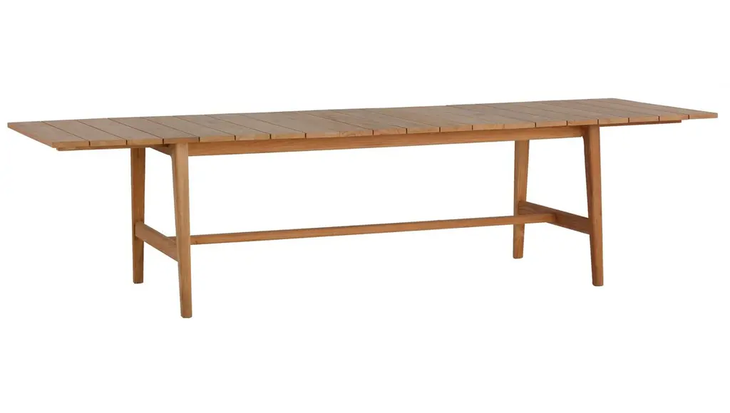 A solid teak table featuring large wide slats the Smyrna Dining Table is perfect for the home and outdoors. Featuring a modern design simple and striking it’s made entirely of solid premium teak unfinished and well sanded. Add up to six matching armchairs from the Smyrna Collection which features teak wood with batyline to complete a teak outdoor dining set. The Smyrna Collection also includes the lounge armchair, sofa, coffee table and sun lounger.