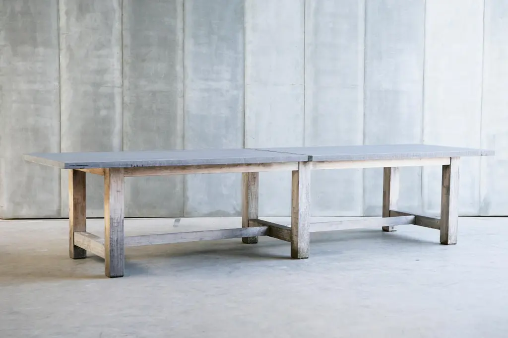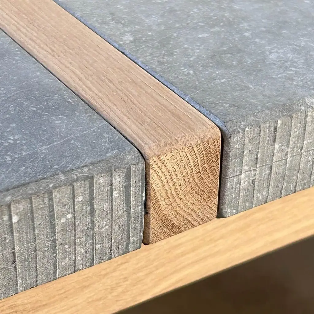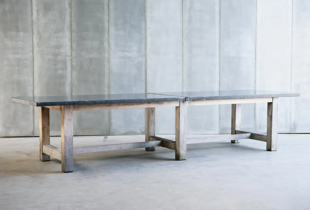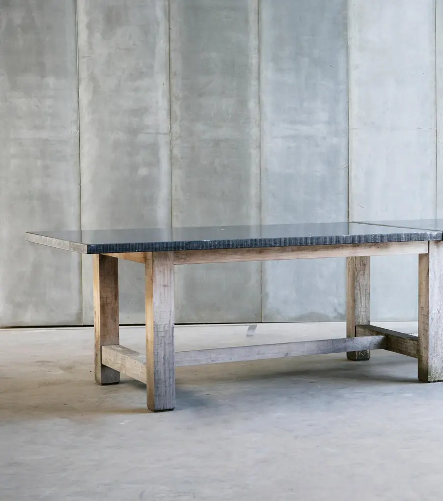 Outdoor Solid Oak Dining Table With Belgian Bluestone Slab Top