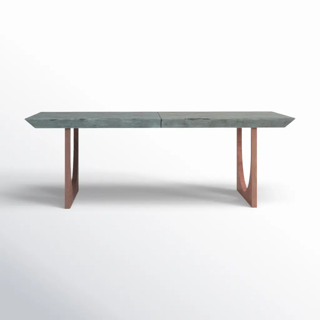 A contemporary outdoor dining table made in the traditional way, using authentic materials.Bluestone table top can be cleaned regularly with damp cloth.If you need to remove any stains that appear (oil, red wine etc), then any general marble and stone cleaning solution may be used.Please contact us if you have any questions about customization and pricing. We will be glad to check with the factory’s technical team if sizes, finishes, and colors can be customized. This item is made of solid wood. Any movement in the wood, little cracks and color changes that might occur over time cannot be considered grounds for complaint. The changes are not imperfections in the material, but rather a natural settling of the wood in reaction to various environmental conditions.Similarly, the possible appearance of marks on the surface of the product is a perfectly normal reaction for solid wood. Email us for additional care and maintenance information.“A typical characteristic of furniture made from natural wood is the potential for resin leakage, particularly from the underside of the piece. To prevent issues such as staining or resin absorption, we recommend avoiding placing new wood furniture on carpets or soft surfaces that limit ventilation, especially during the first few months after purchase. For best results, keep the furniture in a dry and well-ventilated area to allow the wood to acclimate properly.”We do our best to expedite production and to ship and deliver product within the listed lead time, however current lead times might be longer due to global shipping backlog and delays. These delays are out of our control and cannot be a reason to cancel an order.