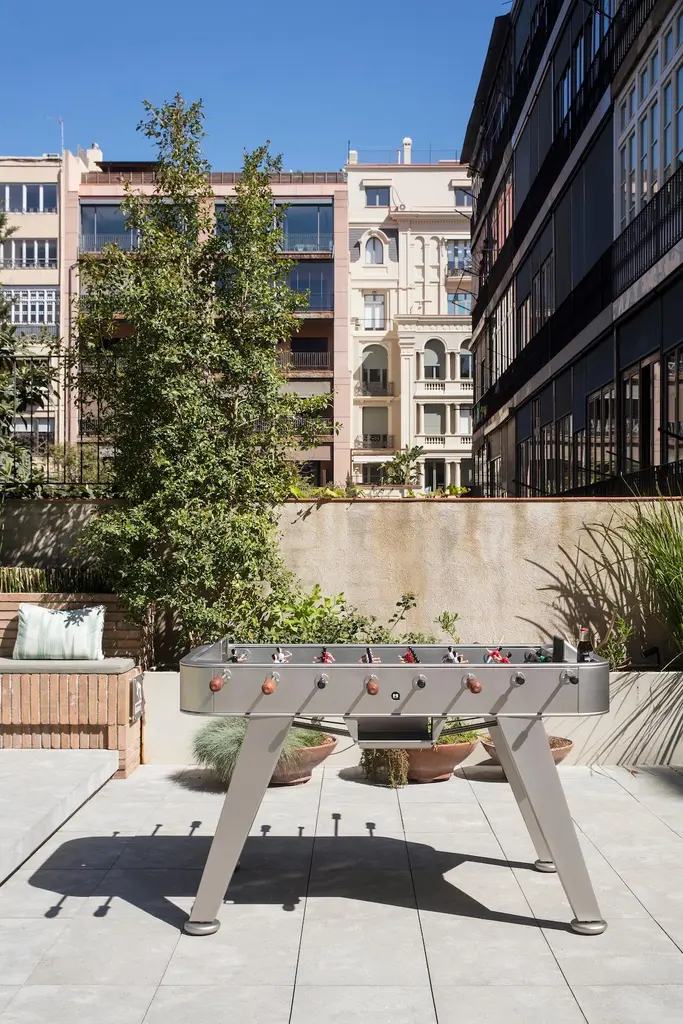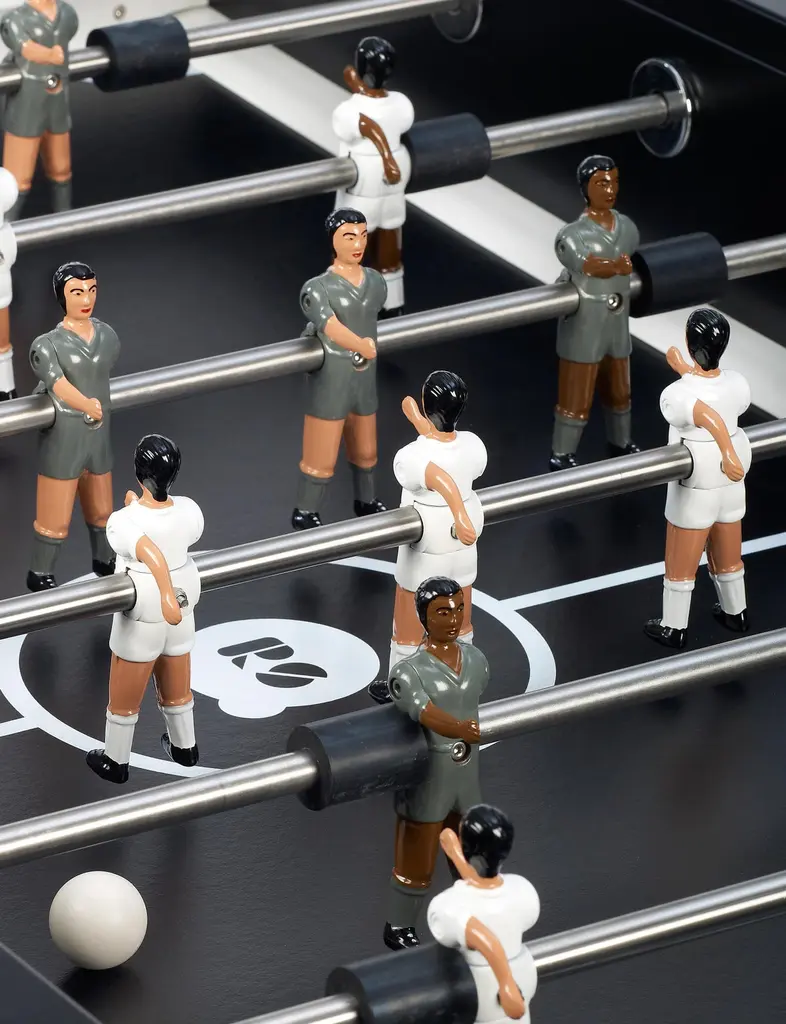 FOOSBALL TABLE RS2 GOLDDESIGNED BY RAFAEL RODRÍGUEZ for RS Barcelona24k gold-plated game play, design and sophistication. The RS2 Gold is our most chic football table. It’s one of the items of our Gold Edition collection, offering an understated and elegant combination of gold and metal.RS2 GOLD is a design football table, a spectacular reinterpretation of one of the all time classics of Spanish game culture, specially dedicated to all those children who at one time or another said that “Adults don’t play, just work”For Residential Offices HospitalityIntense useIndoor & OutdoorCustomisation optionsAlmost assembledDesigned & Manufactured in SpainYes. The RS2 is a spectacular reinterpretation of one of our game cultural classics. It’s a metal Foosball table manufactured with high-quality materials and with very elegant colors. Its timeless design fits into any environment and space and its hardy structure makes it very resistant, stable and long-lasting piece. To play to the highest level and enjoy it fr all your life.The RS2 is an indoor and outdoor Foosball table, so you can have it both in the dining room or in the game room, as well as on the terrace or in the garden.The RS2 also makes the difference in the details, like the four glass-holders (one for each player) or the rubber-based levelers. Each color (white, black, red, blue, green, light-grey, and pink) comes with standard team kits. But the RS2 is also a customizable Foosball table and you can play with your favorite teams.You can choose the line-up (3-3-4 or 2-5-3), the color of the field, if the players are 1 or 2 feet or if you want them to be boys, girls or mixed teams and even the skin color. So you can design your own RS2 and make it a unique piece.The RS2 is an RS Barcelona Foosball table, a brand of intense living products. Products which, with a high design value, high-quality materials, and functionality, offer innovative solutions through a combination of the fine details of craftsmanship and the precision of industrial manufacturing.RS Barcelona’s products are much more than products. They’re experiences. They’re unforgettable and unique moments. They’re a way of understanding and approaching life that can be summed up in one pledge: intense living.It comes with the field a little bit concave, so the ball doesn't stop moving, this way the game is more dynamic.Colors: Inox, white, black, red, blue, greenFavorite teams. Line-up (3-3-4 or 2-5-3)Color of the fieldPlayers: 1 or 2 feet; boys, girls or mixed teams, skin colorQuick Ship (2-3 weeks) inox metal color. Standard team kitsEstimated Delivery time: 9-10 weeks for custom ordersStructureIndoor version: Steel structure and micro textured powder coated polyester paint. Outdoor version: Shot blasted stainless steel lacquered. Inox color: Sand blasted stainless steel and metal varnished.FieldHPL.PlayersCast aluminium.HandlesWood.Measures (LxWxH)150x128x96,5 cm / 59x51x38 inWeight89 kg / 196.2 lbIncludes:Ball set7 units (5 standard balls and 2 silent balls)2 extra players1 per team.