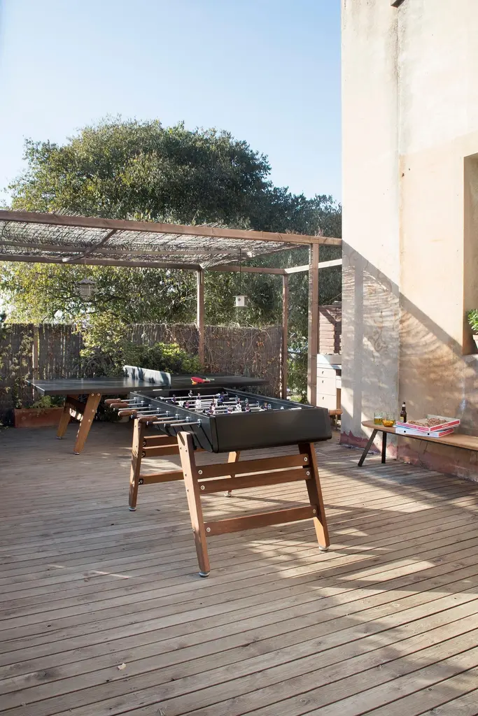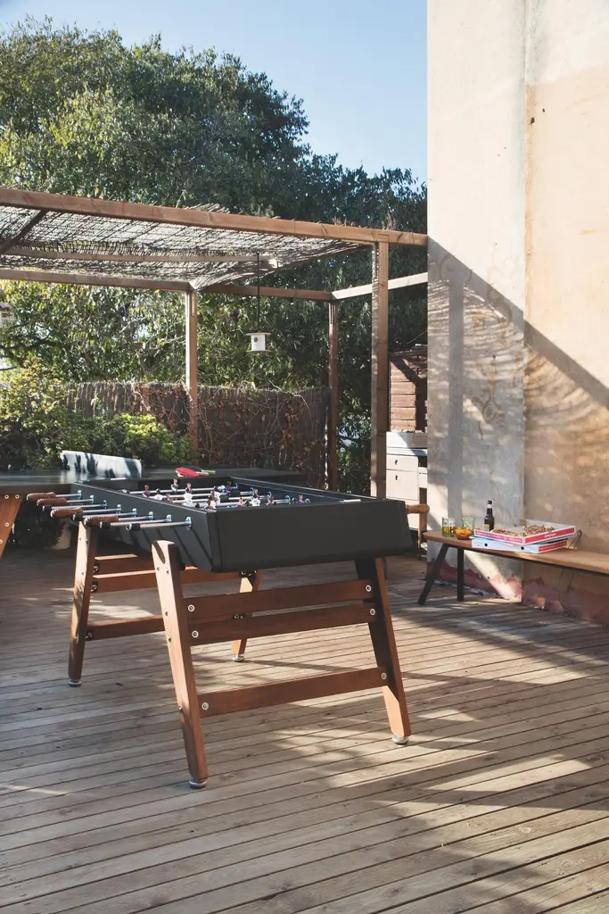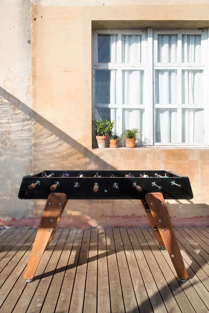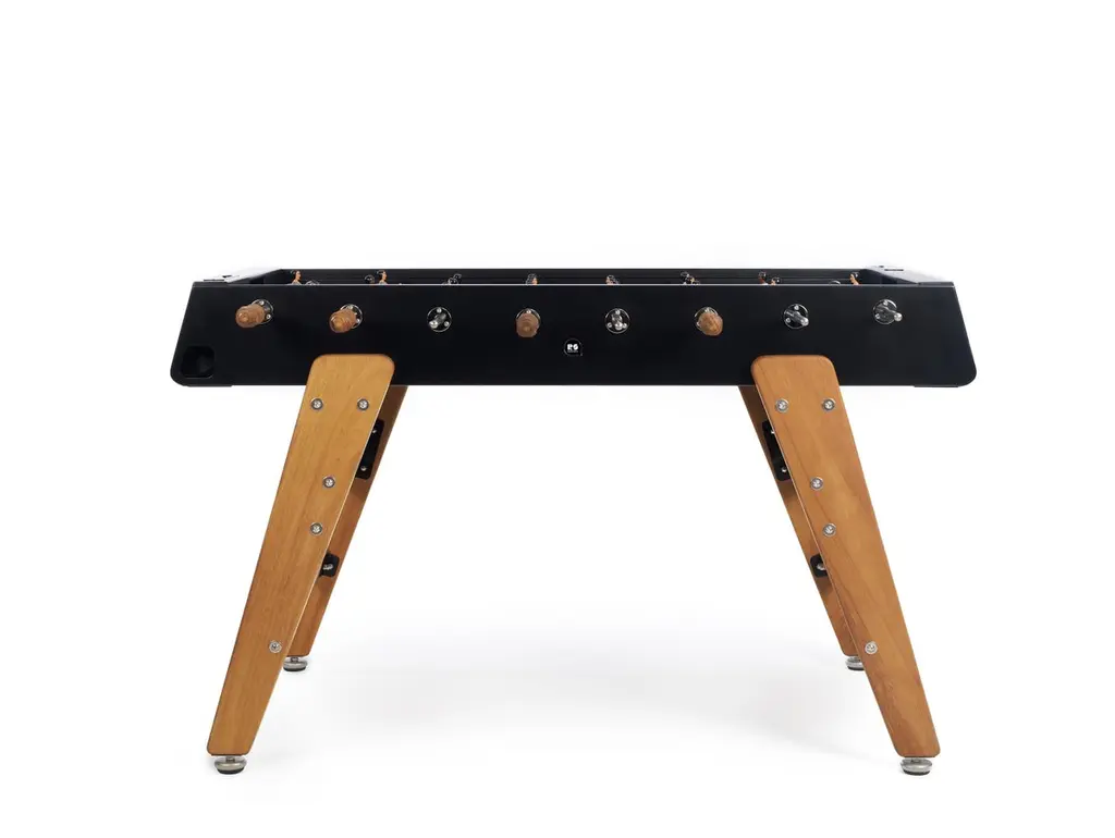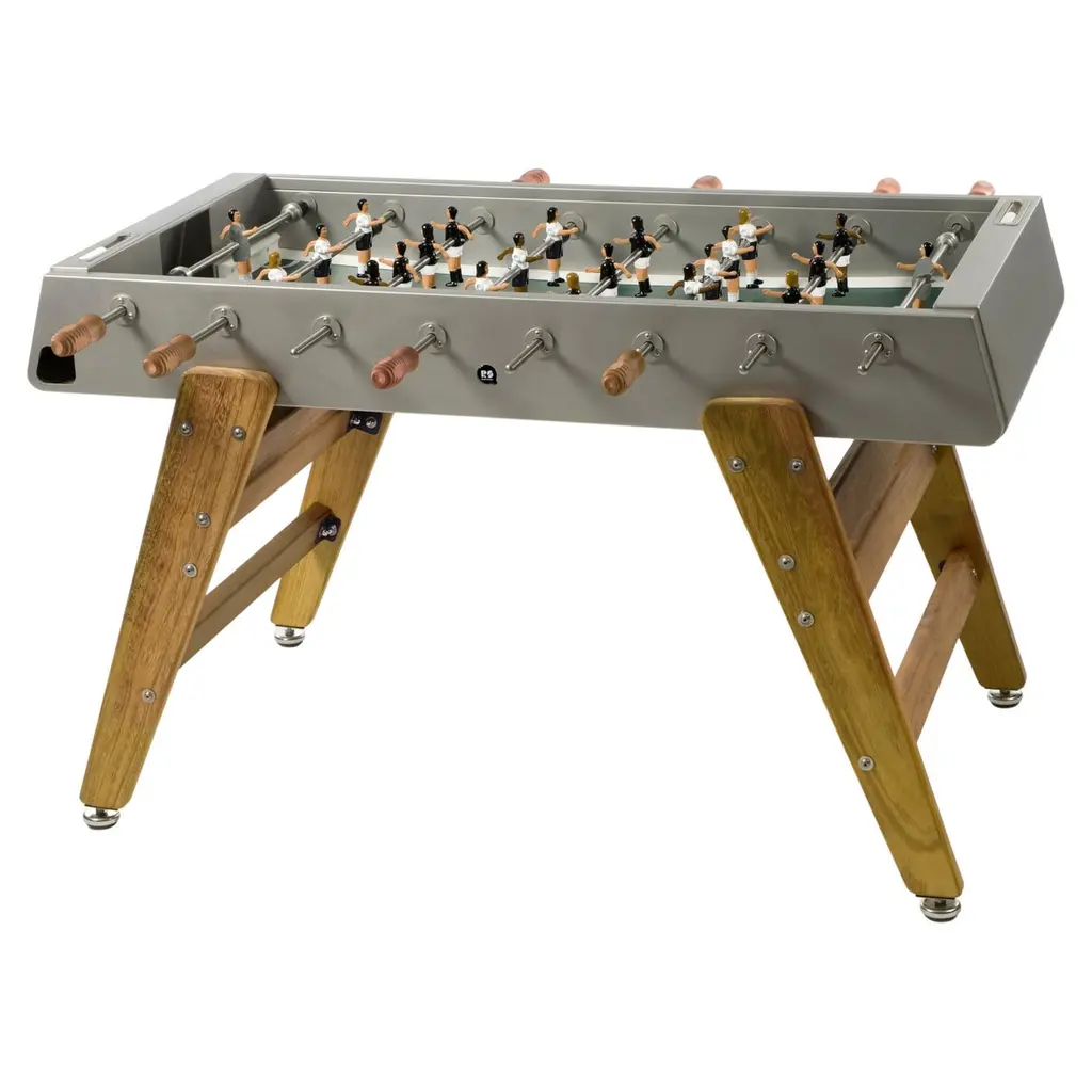 FOOSBALL TABLE RS3 WOODDESIGNED BY RAFAEL RODRÍGUEZ for RS BarcelonaWith the RS3 Wood football table, a new player enters the game. Playtime with a touch of wood. A warmer design for those who know that the combination of two good ingredients always produces super results.RS3 WOOD is a design football table, a spectacular reinterpretation of one of the all time classics of Spanish game culture, specially dedicated to all those children who at one time or another said that “Adults don’t play, just work”For Residential Offices HospitalityIntense useIndoor & OutdoorCustomisation optionsAlmost assembledDesigned & Manufactured in SpainThe RS3 Wood is an indoor and outdoor Foosball table, so you can have it both in the dining room or in the game room, as well as on the terrace or in the garden. Each color (white, black, green and light grey-inox) comes with standard team kits. But the RS3 Wood is also a customizable Foosball table and you can play with your favorite teams.It comes with the field a little bit concave, so the ball doesn't stop moving, this way the game is more dynamic.You can choose the line-up (3-3-4 or 2-5-3), the color of the field, if the players are 1 or 2 feet or if you want them to be boys, girls or mixed teams and even the skin color. So you can design your own RS3 Wood and make it a unique piece.The RS3 Wood is an RS Barcelona Foosball table, a brand of intense living products. Products which, with a high design value, high-quality materials and functionality, offer innovative solutions through a combination of the fine details of craftsmanship and the precision of industrial manufacturing.RS Barcelona’s products are much more than products. They’re experiences. They’re unforgettable and unique moments. They’re a way of understanding and approaching life that can be summed up in one pledge: intense living.Colors: Inox, white, black, terracotta, blue, greenFavorite teams. Line-up (3-3-4 or 2-5-3)Color of the fieldPlayers: 1 or 2 feet; boys, girls or mixed teams, skin colorQuick Ship (2-3 weeks) for white and black colors. Standard team kitsEstimated Delivery time: 9-10 weeks for custom orders and other colorsStructureShot blasted stainless steel lacquered.LegsIroko wood.FieldHPL.PlayersCast aluminium.HandlesWood.Measures (LxWxH)151x128x92 cm / 59.5x51x36 inWeight78 kg / 172 lbBall set7 units (5 standard balls and 2 silent balls).4 extra players2 per team.