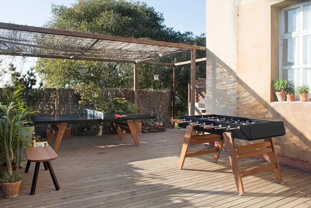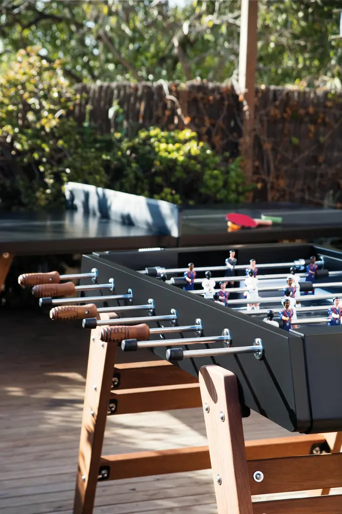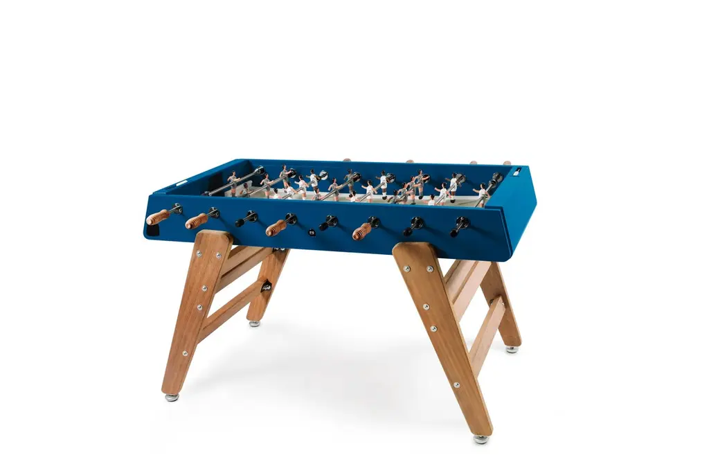FOOSBALL TABLE RS3 WOODDESIGNED BY RAFAEL RODRÍGUEZ for RS BarcelonaWith the RS3 Wood football table, a new player enters the game. Playtime with a touch of wood. A warmer design for those who know that the combination of two good ingredients always produces super results.RS3 WOOD is a design football table, a spectacular reinterpretation of one of the all time classics of Spanish game culture, specially dedicated to all those children who at one time or another said that “Adults don’t play, just work”For Residential Offices HospitalityIntense useIndoor & OutdoorCustomisation optionsAlmost assembledDesigned & Manufactured in SpainThe RS3 Wood is an indoor and outdoor Foosball table, so you can have it both in the dining room or in the game room, as well as on the terrace or in the garden. Each color (white, black, green and light grey-inox) comes with standard team kits. But the RS3 Wood is also a customizable Foosball table and you can play with your favorite teams.It comes with the field a little bit concave, so the ball doesn't stop moving, this way the game is more dynamic.You can choose the line-up (3-3-4 or 2-5-3), the color of the field, if the players are 1 or 2 feet or if you want them to be boys, girls or mixed teams and even the skin color. So you can design your own RS3 Wood and make it a unique piece.The RS3 Wood is an RS Barcelona Foosball table, a brand of intense living products. Products which, with a high design value, high-quality materials and functionality, offer innovative solutions through a combination of the fine details of craftsmanship and the precision of industrial manufacturing.RS Barcelona’s products are much more than products. They’re experiences. They’re unforgettable and unique moments. They’re a way of understanding and approaching life that can be summed up in one pledge: intense living.Colors: Inox, white, black, terracotta, blue, greenFavorite teams. Line-up (3-3-4 or 2-5-3)Color of the fieldPlayers: 1 or 2 feet; boys, girls or mixed teams, skin colorQuick Ship (2-3 weeks) for white and black colors. Standard team kitsEstimated Delivery time: 9-10 weeks for custom orders and other colorsStructureShot blasted stainless steel lacquered.LegsIroko wood.FieldHPL.PlayersCast aluminium.HandlesWood.Measures (LxWxH)151x128x92 cm / 59.5x51x36 inWeight78 kg / 172 lbBall set7 units (5 standard balls and 2 silent balls).4 extra players2 per team.