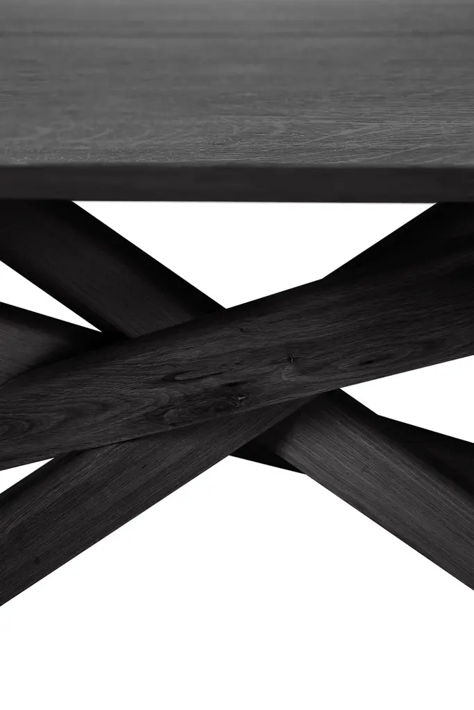 The Oval Black Oak Dining Table by Ethnicraft is a captivating addition to any living space. Crafted from black-tainted oak with a varnished finish, this Mikado table exudes timeless charm. Its sculptural character is the result of a quest to find a balance between functionality and stability. The legs interlock like a well-thought-out puzzle, arranged under a solid oval top. This piece showcases modern craftsmanship and adds an element of intrigue to your home. Download Assembly SheetDownload Technical Line DrawingDownload Care Instructions