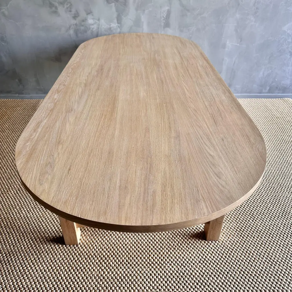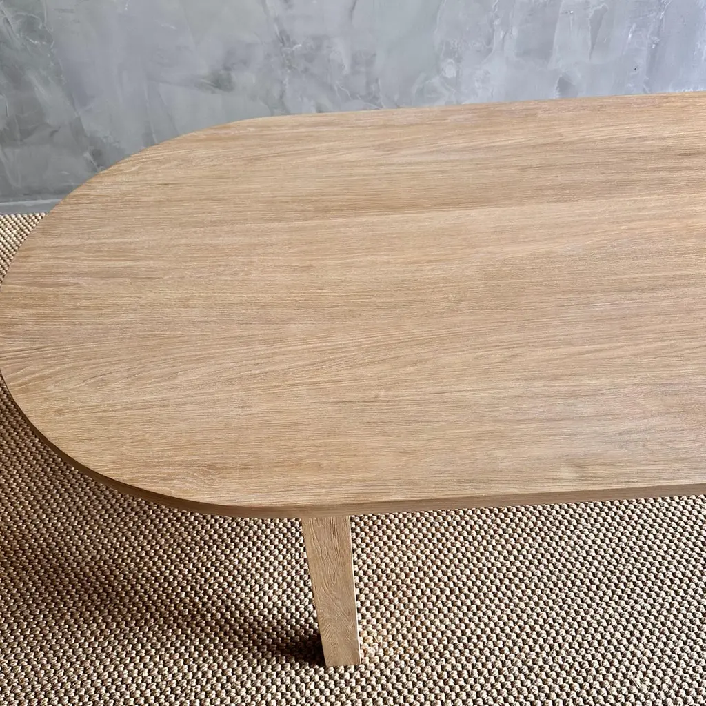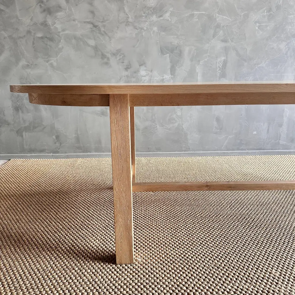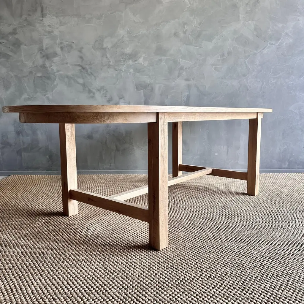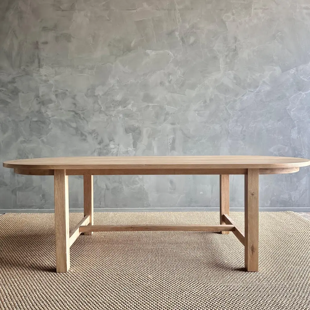 Introducing our exquisite Amber oval dining table, crafted from beautiful white oak for a touch of elegance. Its solid construction ensures durability and longevity, perfect for everyday use. The design is minimal yet with transitional appeal, blending seamlessly into any dining space. The oiled finish adds a sophisticated touch, enhancing the natural beauty of the wood. For a complete dining set, pair it with our Ellie dining chairs for a cohesive look that exudes style and comfort.96" L x 40."D x 30"HUnder table clearance 26.25"Between Legs 56.5"Stretcher to the End of Oval 17"Wood Species: White OakAssembly RequiredFinish: Natural / OiledWe recommend using a mild white soap, or natural soap for cleaning. Wipe spills with a damp cloth for easy maintenance.