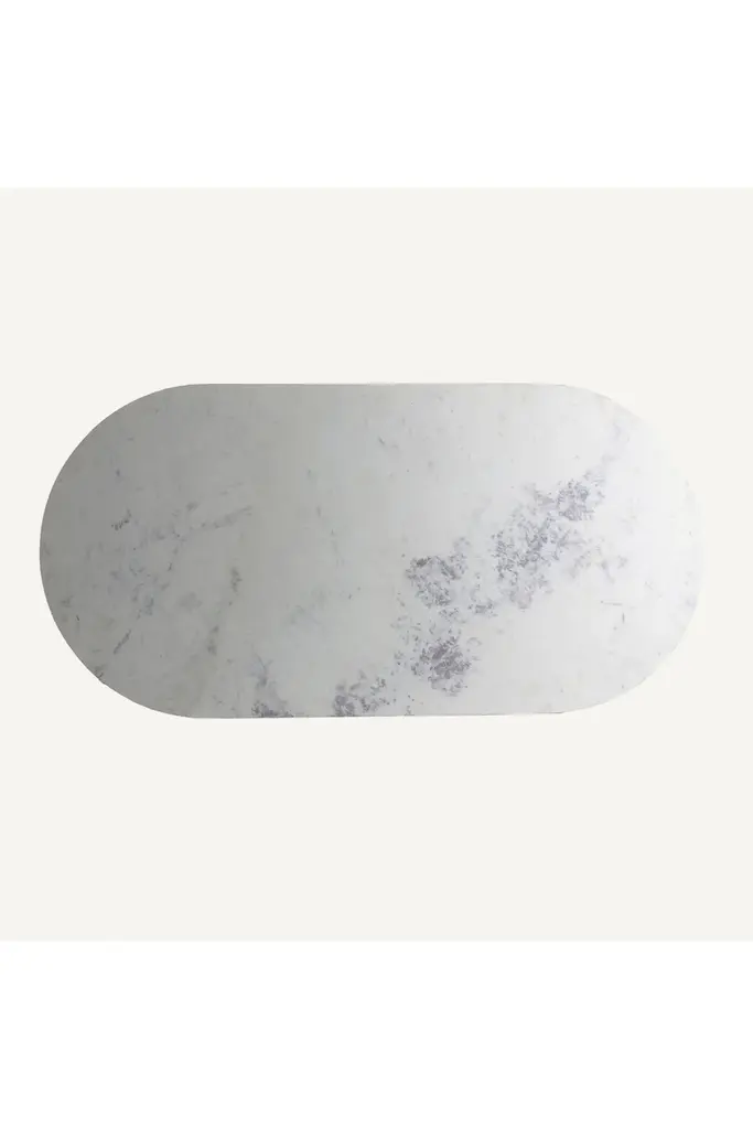 The Lezey Dining Table by Vical Home is a masterpiece in marble and steel. Its white finish with gold accents exudes luxury. The oval marble and gold dining table is perfect for those looking for furniture that is both a conversation point and a place to share meals.