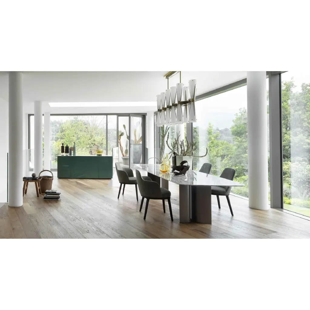 The Oval Modern Dining Table by Lema is the product of extensive research by Gabriele and Oscar Buratti into the “complex simplicity" of curved lines and the rich presence they bring to a space. The project is characterized by the expert combination of different materials and the sculptural lines of the base, which interact with the light and the surrounding space to create a never-ending dance of shadows, reflections, and angles. There is a bold feel to the paired, curved legs – as elegant as wings – which serve as the base for Gullwing in its various guises.