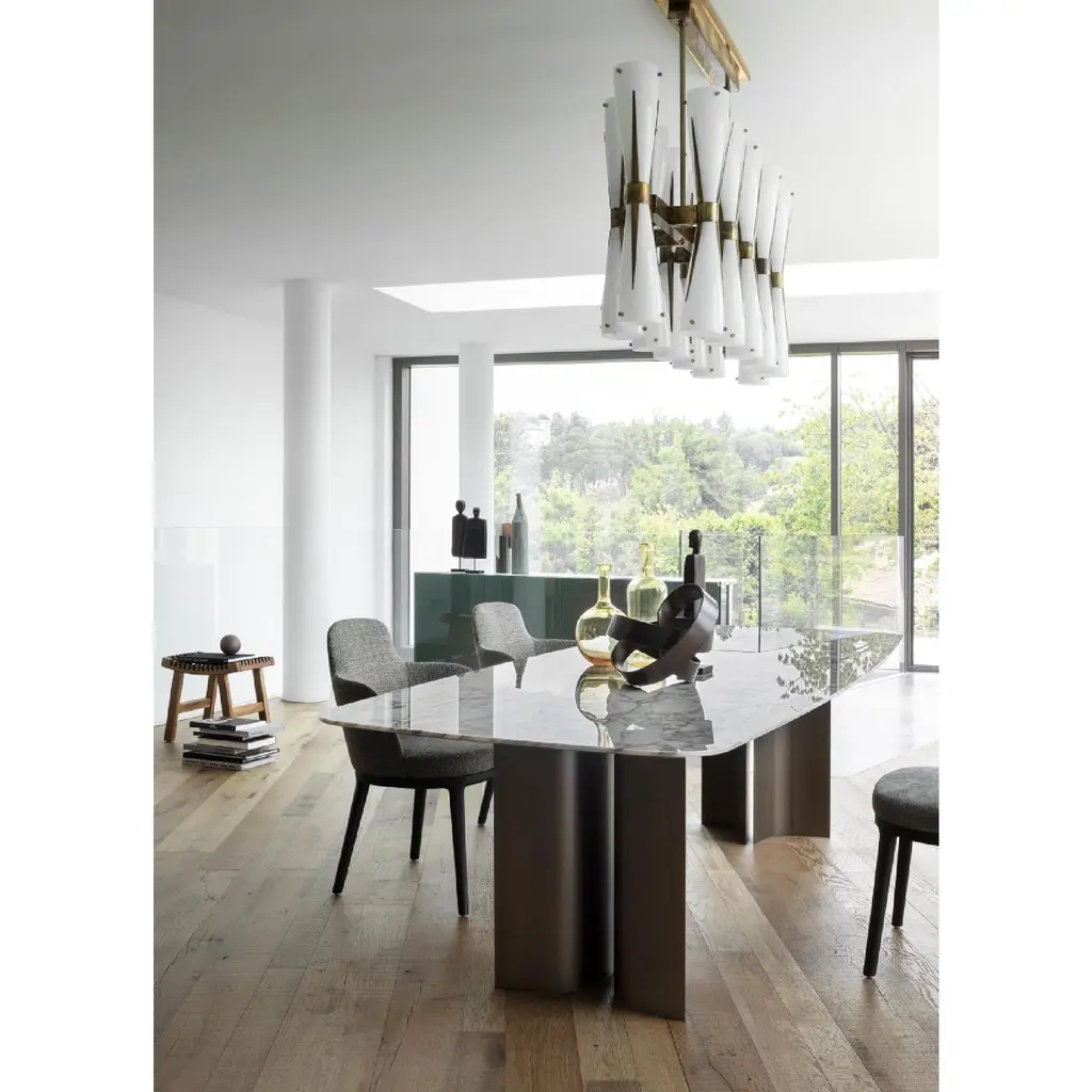The Oval Modern Dining Table by Lema is the product of extensive research by Gabriele and Oscar Buratti into the “complex simplicity" of curved lines and the rich presence they bring to a space. The project is characterized by the expert combination of different materials and the sculptural lines of the base, which interact with the light and the surrounding space to create a never-ending dance of shadows, reflections, and angles. There is a bold feel to the paired, curved legs – as elegant as wings – which serve as the base for Gullwing in its various guises.