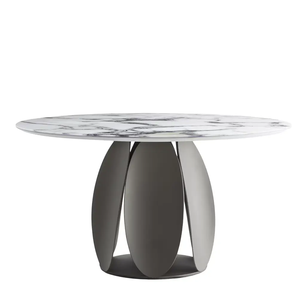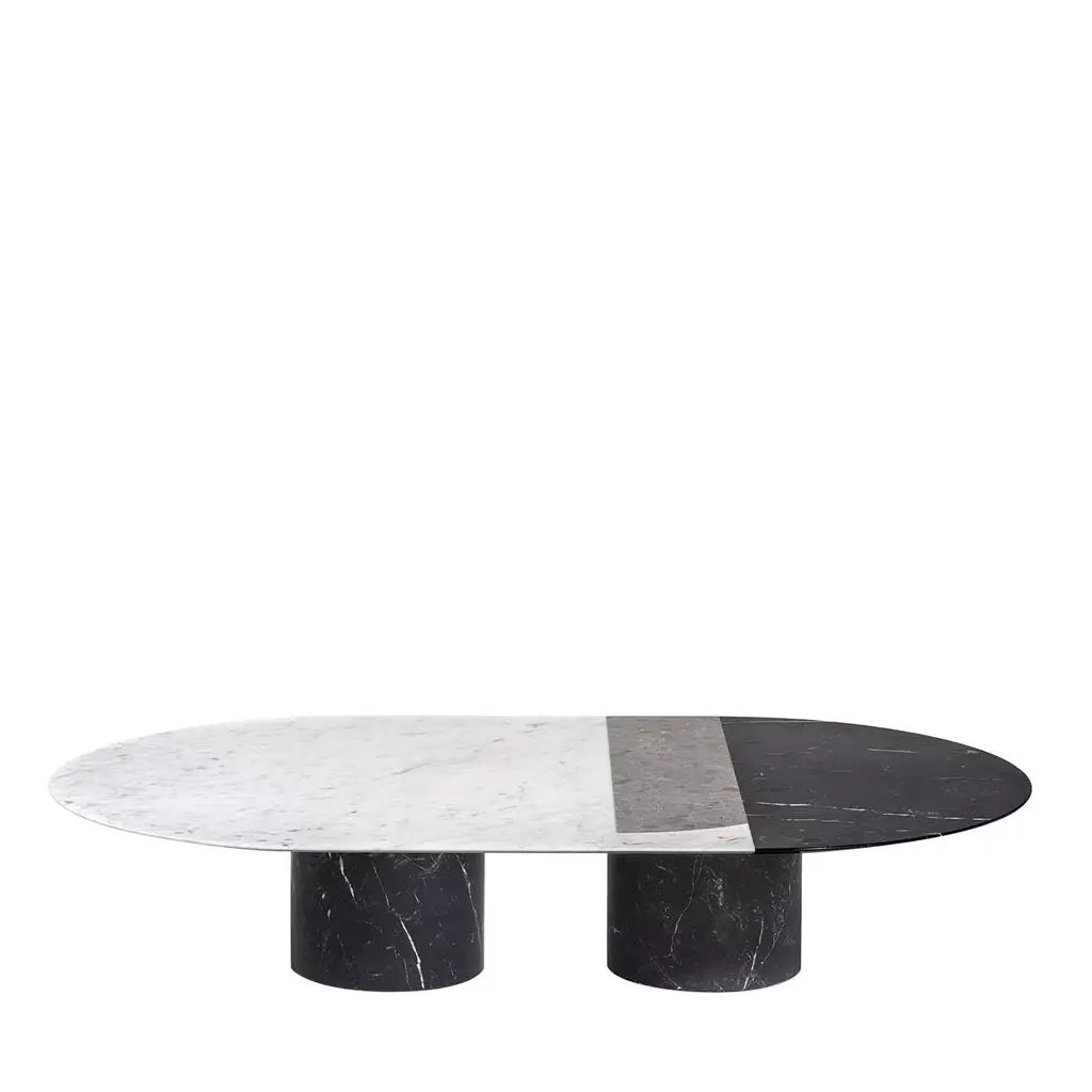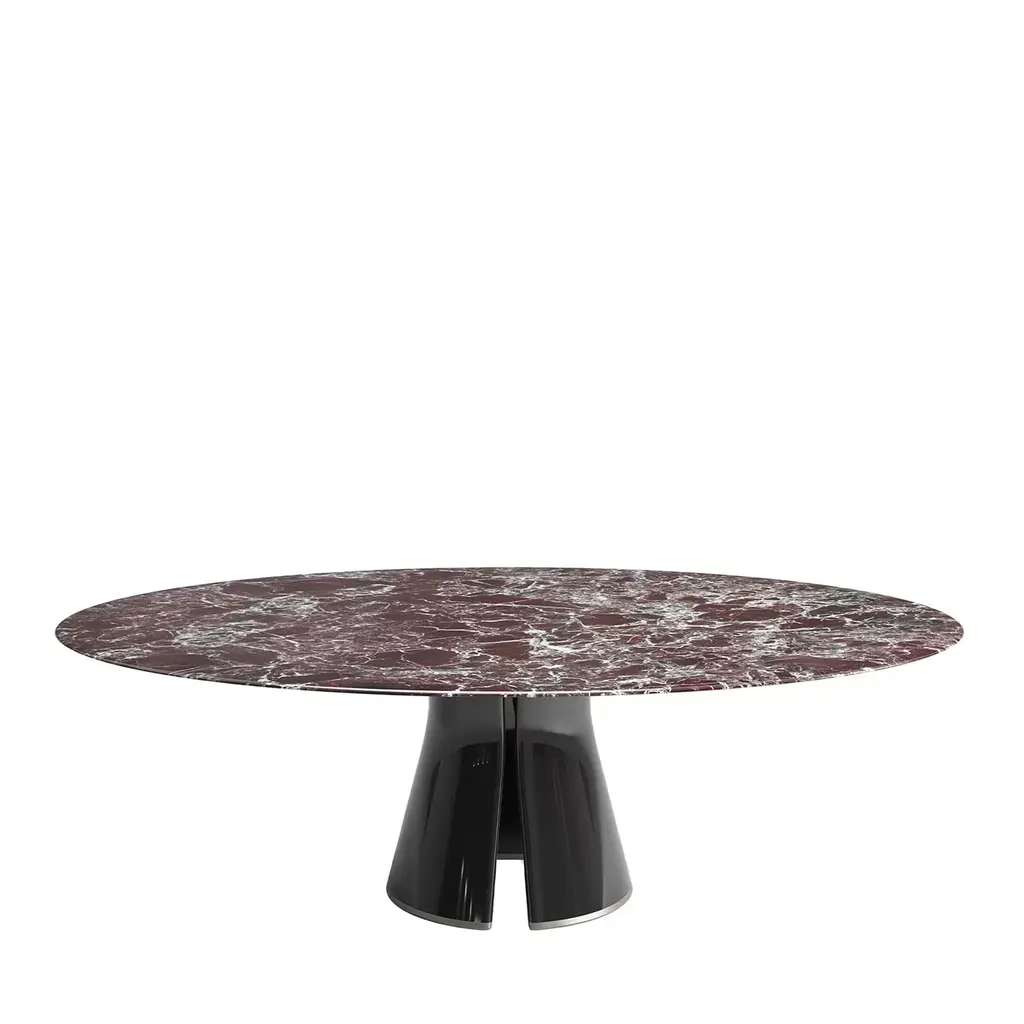 Oval dining table with marble top Red Passion. Glossy lacquered base col. Black & Brushed steel.