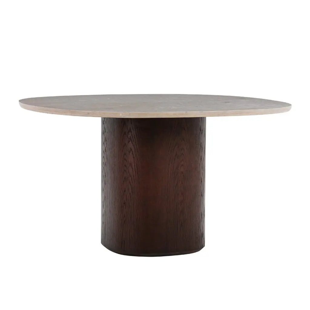 Ovata Dining Table, Brown Oak - Jura Grey Limestone