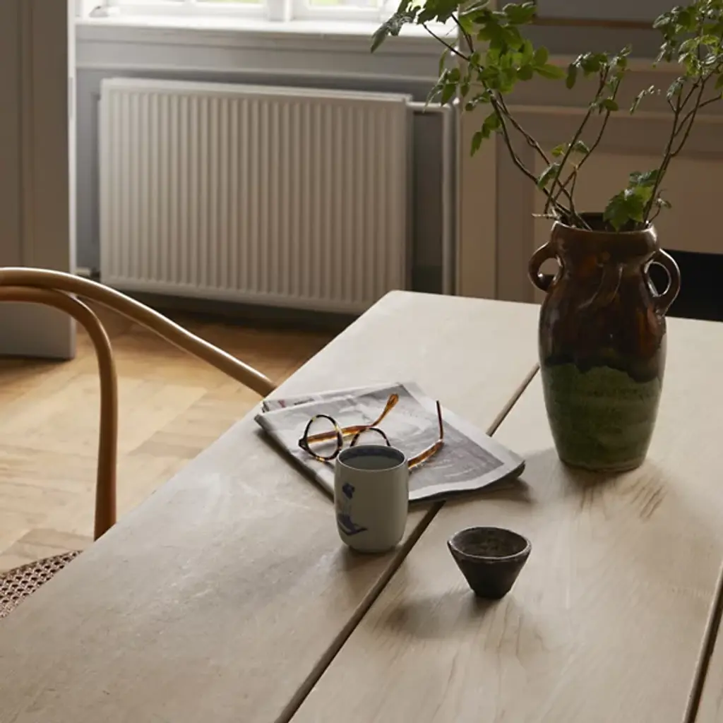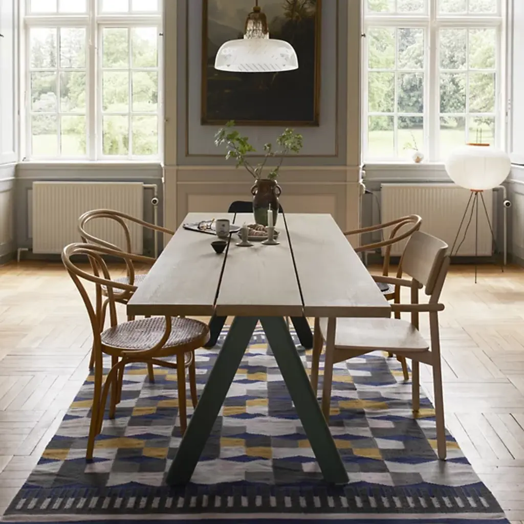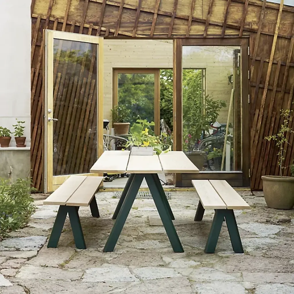 Strong materials balance on top of each other to create the visually light yet structurally sound Overlap Outdoor Dining Table from Fritz Hansen. Designer TAF Architects’ work is based on a collaborative design approach. This TAF Architects piece highlights the contrast of wood and metal. These materials are paired with simple shapes that appeal to modern and contemporary tastes. The powder-coated steel base stands with bold angles covered in a uniform finish. This even finish showcases the distinct grain and organic hues of the patinating wood placed on top. The wood tabletop is arranged in a familiar slatted design for a warm, inviting feel.