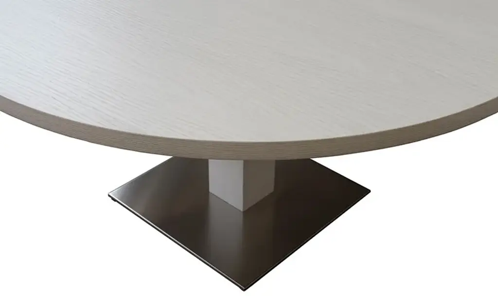 Oxford is a round oak table, an example of the best use of materials: starting from the brushed oak top with a matt lacquered skimmed finish, following with base that is in cast iron covered with satin-finish steel sheet. The Oak is used also to cover the central leg that supports the top. The combination of materials means that this table becomes the heart of the dining area, representing a place chosen for the conviviality of those who live in this area.
