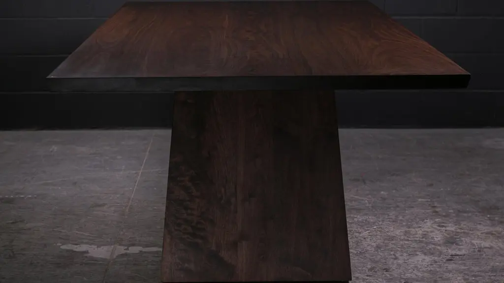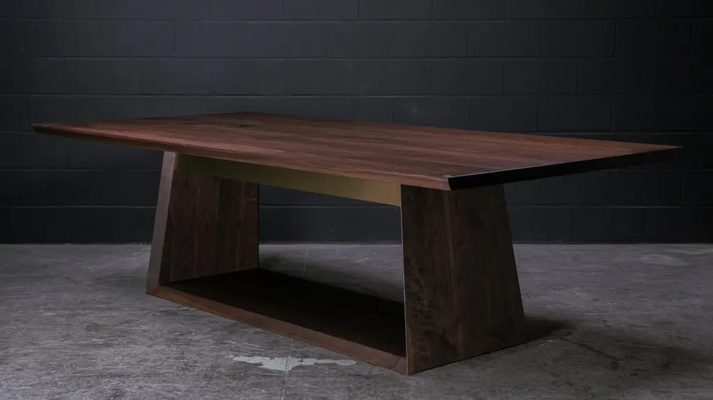 The Oxford is an elegant contemporary dining table handmade to order from solid hand selected American hardwood, featuring subtle hand polished brass details. While the elegant multi-angled central base offer plenty of space for legs, you can observe a subtle metal trusted underneath the table surface. The table has hardwax oil + Nanoceramics finish that enhance the real beauty of the wood and give a natural warm touch & maximum protection .The Oxford dining table is a true centerpiece for a dining room or home kitchen. Handmade to last a lifetime.Available in these suggested sizing:84 L, 42 D 96 L, 44 D 108 L, 44 or 48D120 L, 44 or 48D136 L, 44 or 48DMade to order in our workshop/studio in Québec, Canada. The product illustrated serves as an example, the wood grain may vary from one product to another. Prices vary depending on the options chosen. Each piece is signed with our signature brass medallion.