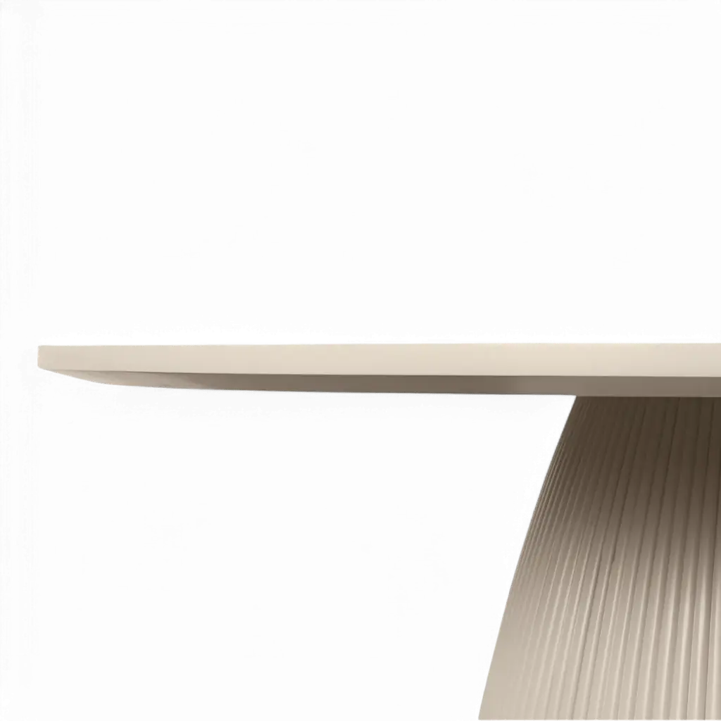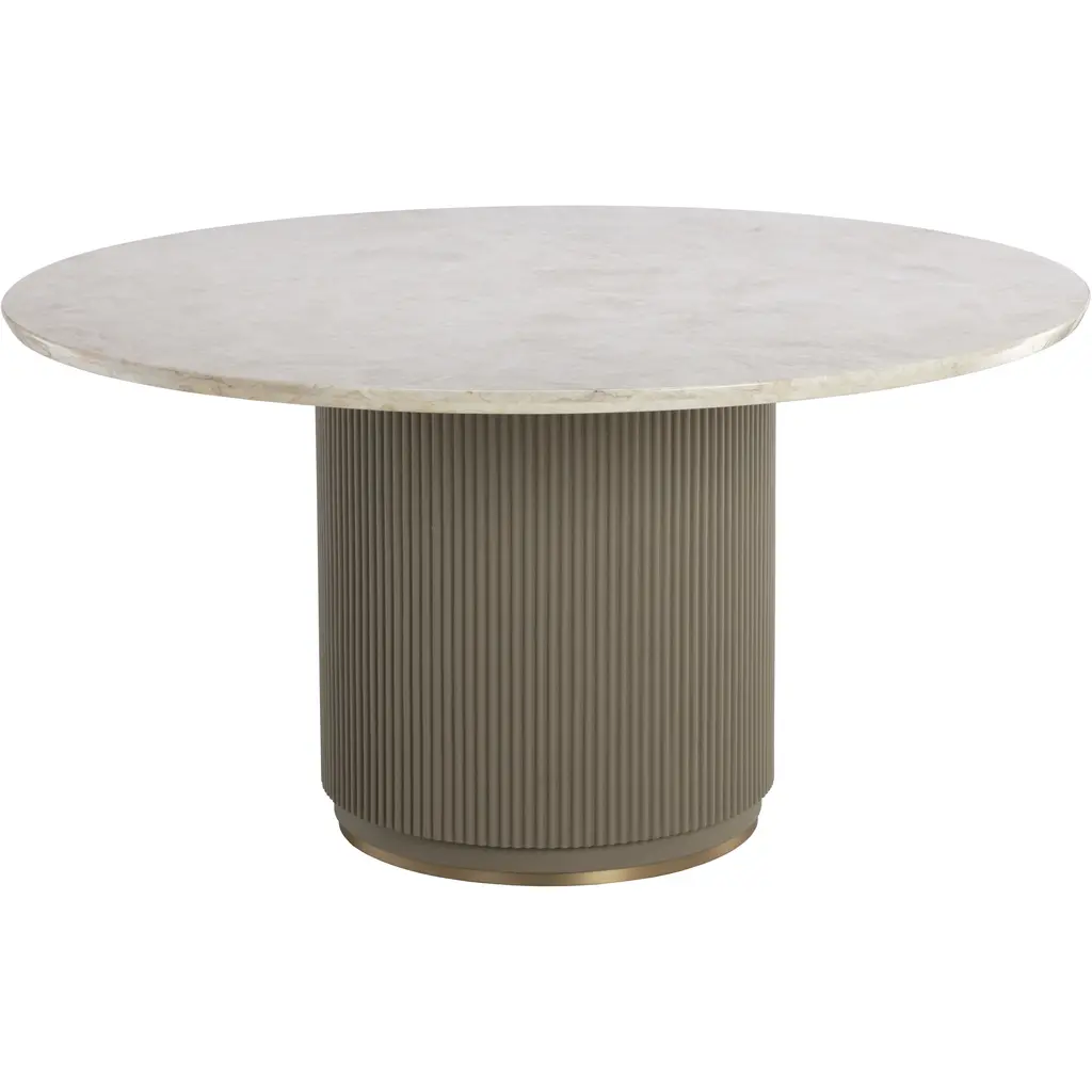 The Oxford Round Dining Table Alabaster is a stunning centerpiece for any dining space. Finished in a soft and sophisticated Alabaster color, this table brings a bright and airy touch to any dining space. Its 63-inch diameter provides ample space for gatherings, making it perfect for hosting family meals or intimate dinner parties. The standout feature of this table is its base design, showcasing an eye-catching arrangement of vertical wood slats that add depth and texture to the overall aesthetic. The combination of the clean, round tabletop and the artistic base creates a harmonious blend of modern and classic design elements, making the Oxford Dining Table Alabaster a stylish and functional choice for your home. Also available in Black Wood and Greige Oak. Top Finish: MDF | Inner Frame Material: Rubberwood | Base Material: Rubberwood | Seating Capacity: 8