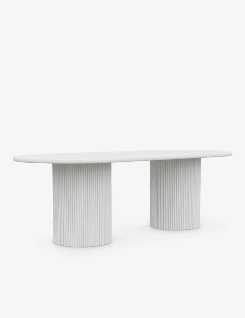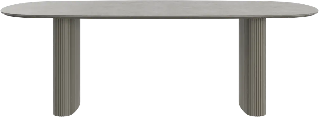 An outdoor rectangular dining table featuring two lacquered bases and a marble top. The table combines sleek modern design with elegant materials, offering a durable and stylish solution for outdoor dining. The lacquered bases provide a sturdy foundation while adding a touch of sophistication, and the marble top adds luxury with its smooth, polished finish. This table is perfect for creating an upscale dining experience in outdoor spaces, combining both practically and aesthetic appeal.
