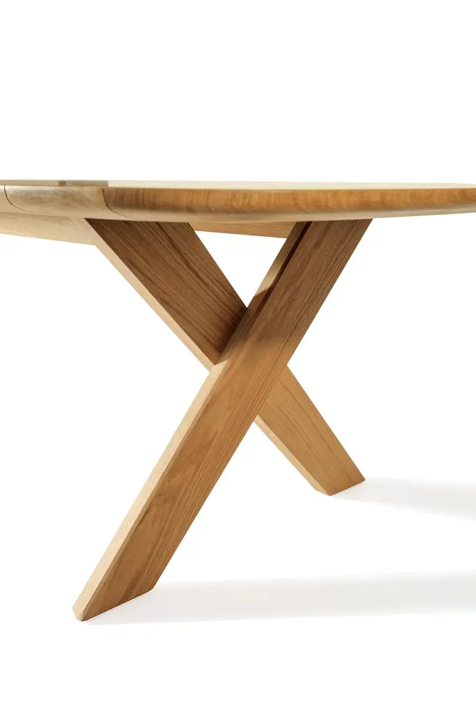 Table entirely in solid wood with a top made of juxtaposed slats without gaps and rounded edges. Two X-shaped legs give it strength and dynamism.Designed by Terry Dwan and made in Italy.Available in Walnut, Cherry, Oak, and Maple Wood in a variety of different sizes.
