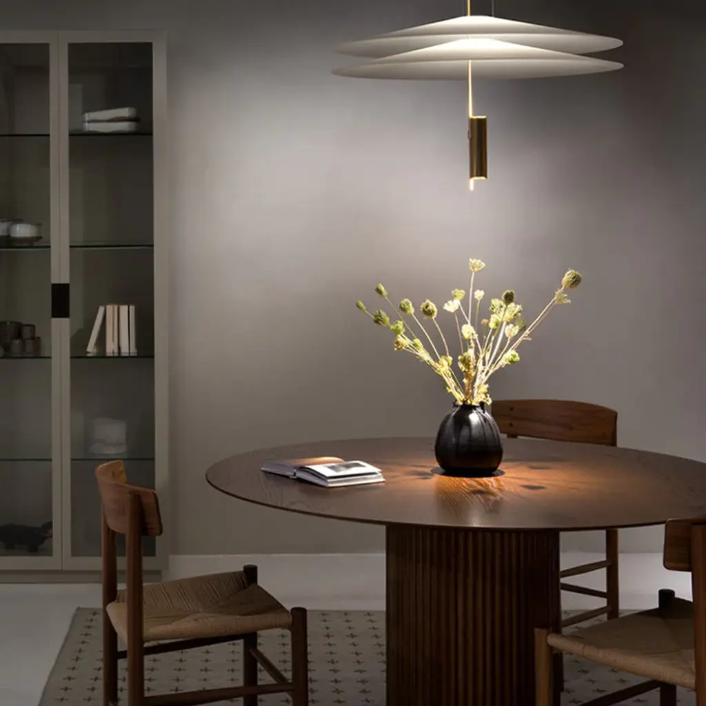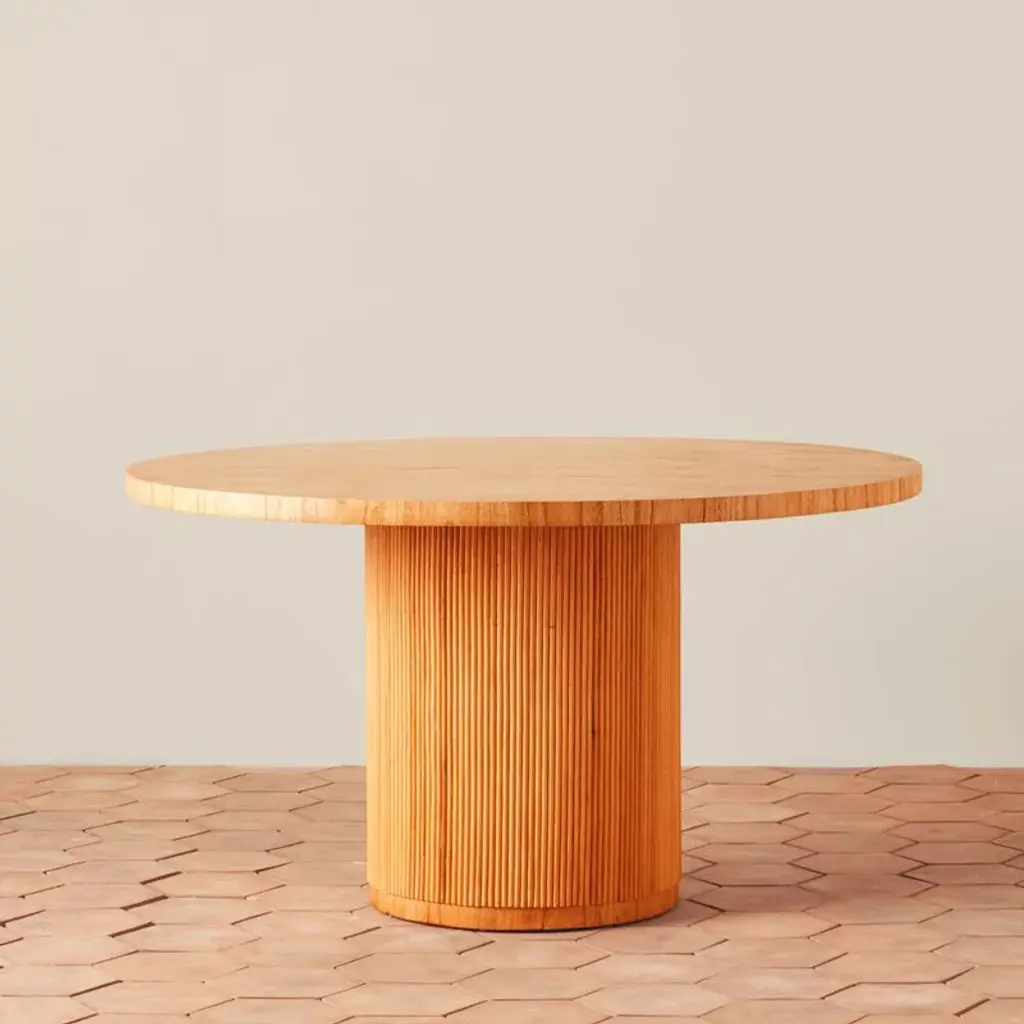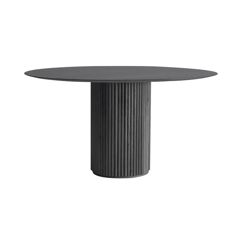 For their updated take on a grand dining table, designers Anya Sebton and Eva Lilja Löwenhielm were inspired by a onetime exhibition of columns at Paris' Palais Royale. With "the elegance and luxury from past tense,“ says Anya, "we have chosen to play with a semi-circular profile that creates a beautiful relief together with a pure Scandinavian expression.” The table's weighted columnar base is fashioned with solid-oak panels while the tabletop has a corresponding solid-oak edge in the same color. Surface options include polyurethane-finished stained oak or several choices of a high-performance matte nano-laminate. Crafted in Sweden for innovative Stockholm-based maker Asplund.