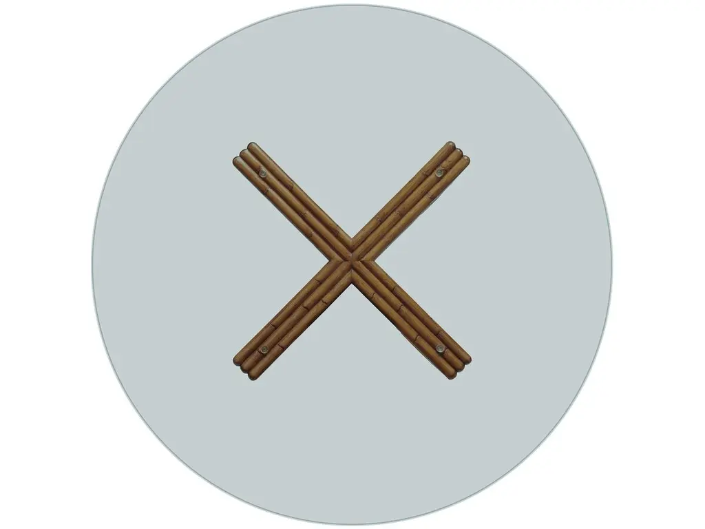 This dining table's round glass top helps show off the artistry of its base, which is made of wood carved to look like bamboo. Four feet in diameter, the table can seat up to six people.