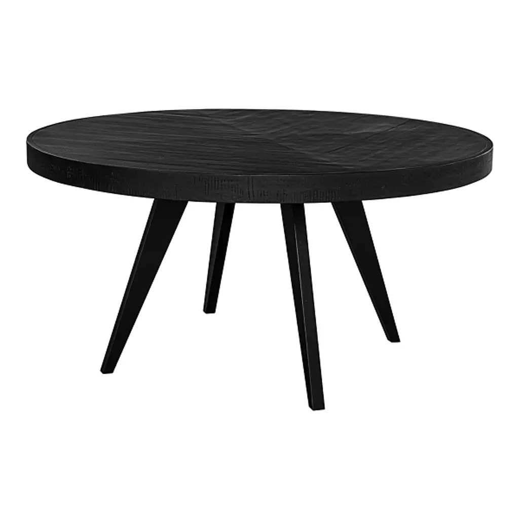 True to itself and its surroundings. The Panfilo Round Dining Table by Huxe features a parquet pattern top in solid acacia wood, inspiring its name as well as the admiration of friends, family and guests who pull up their chairs around it. Splayed and tapered legs complete this table's aesthetic in assertive modern style, allowing it to flatter futuristic as well as classic décor stories.