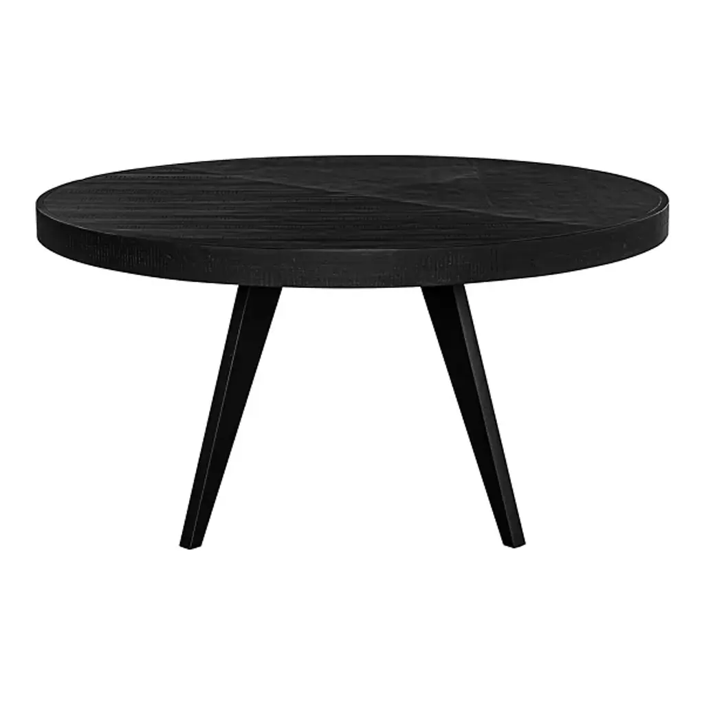 True to itself and its surroundings. The Panfilo Round Dining Table by Huxe features a parquet pattern top in solid acacia wood, inspiring its name as well as the admiration of friends, family and guests who pull up their chairs around it. Splayed and tapered legs complete this table's aesthetic in assertive modern style, allowing it to flatter futuristic as well as classic décor stories.