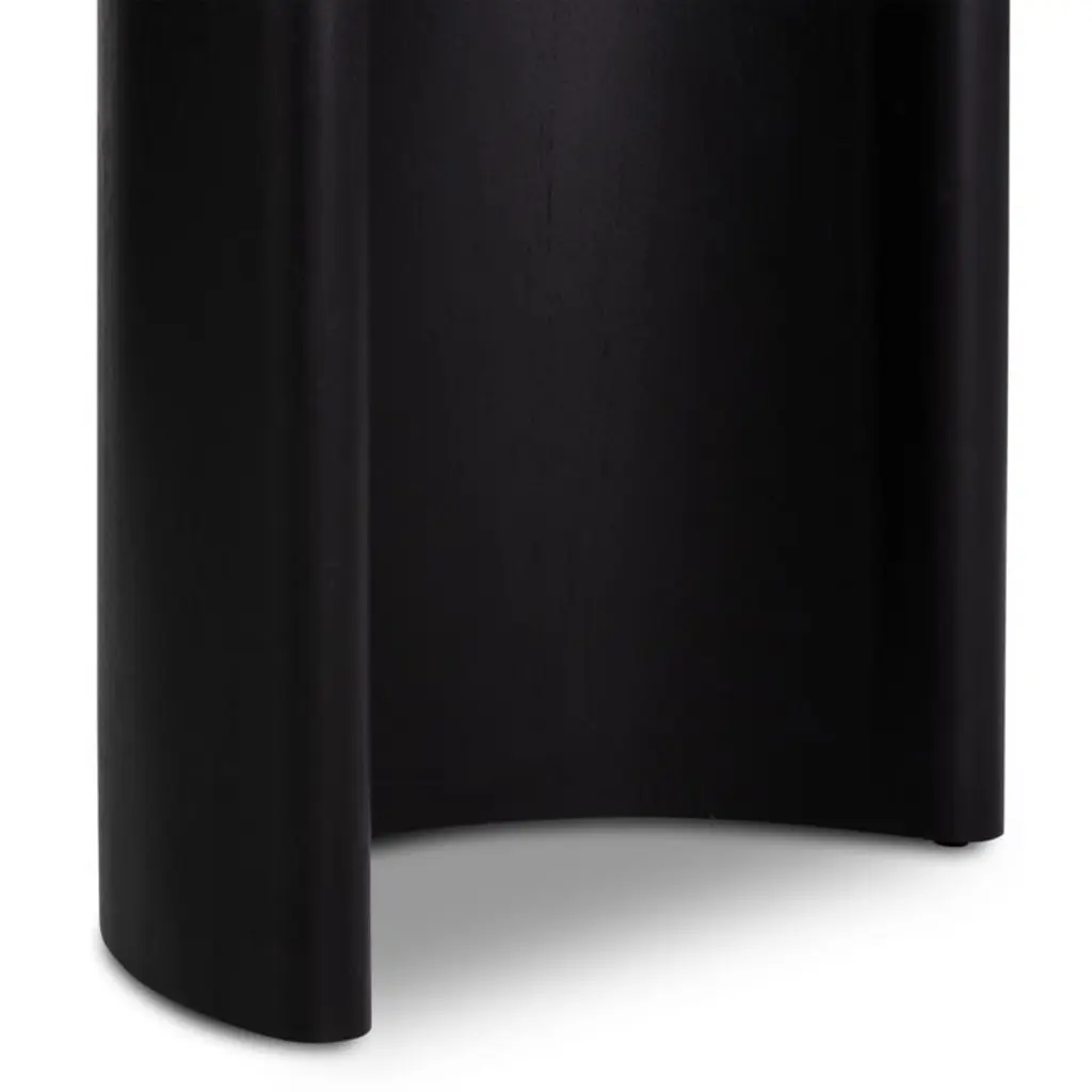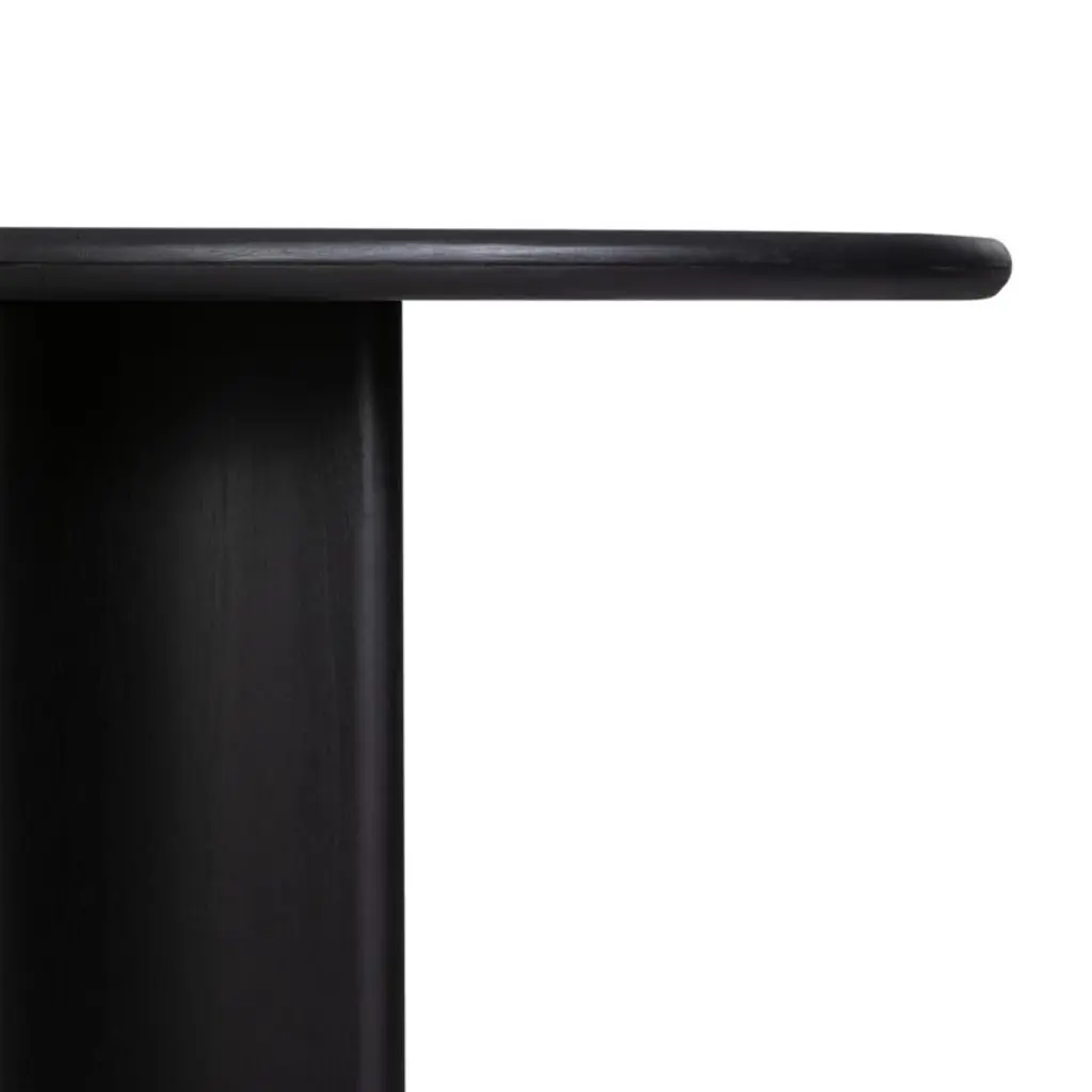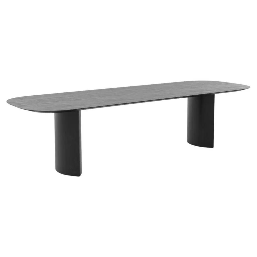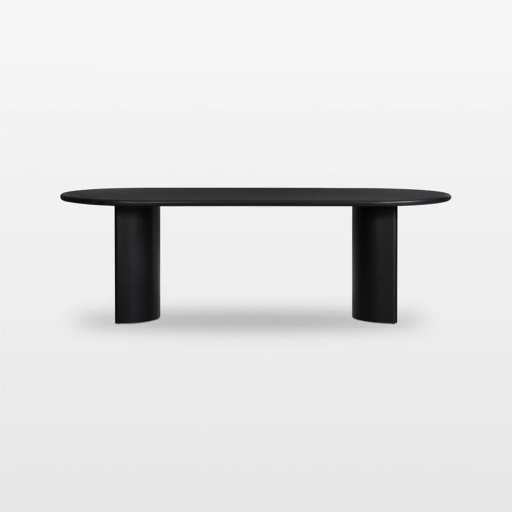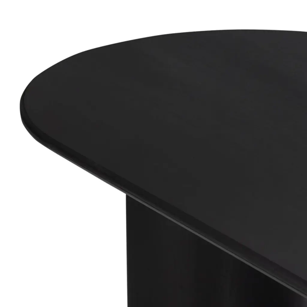 Like a great work of contemporary sculpture, our Panos dining table explores shape and balance in solid acacia wood. A black finish creates an eye-catching silhouette of the bold crescent-curved legs and a broad oval top. Organic-leaning with sophisticated simplicity, the perfectly proportioned table seats six.