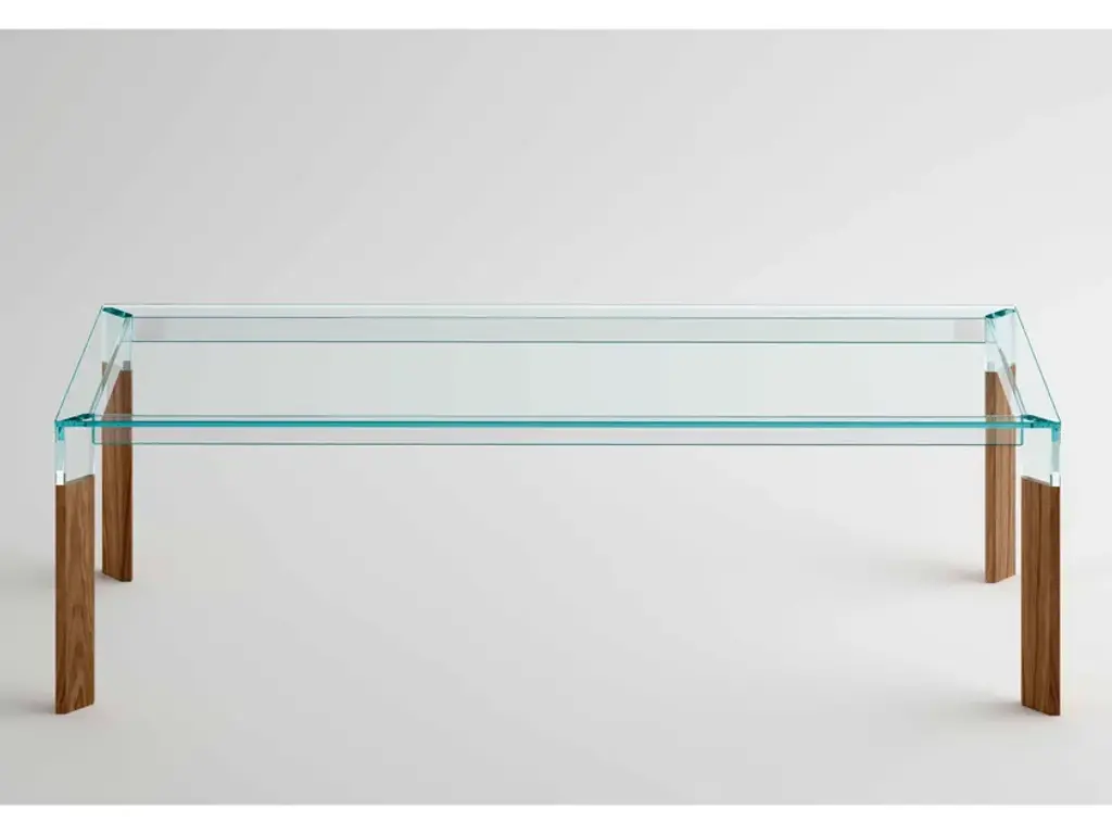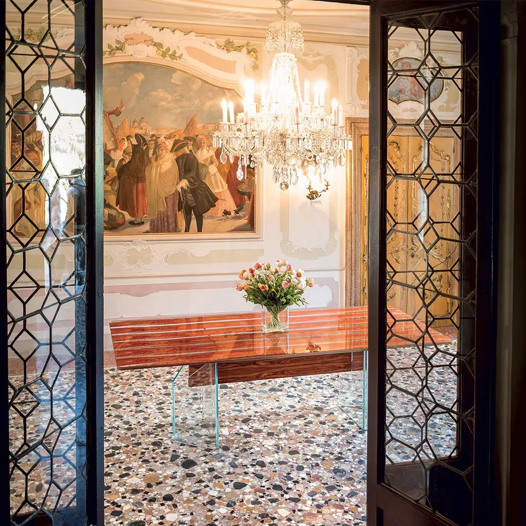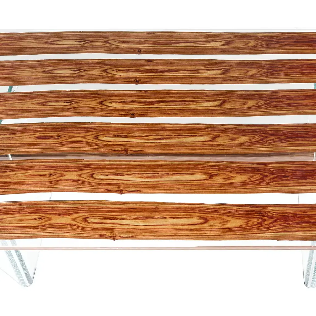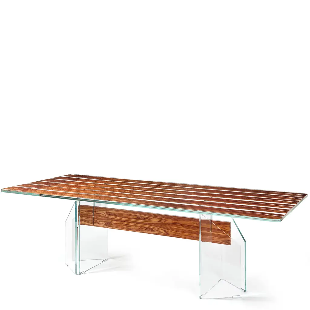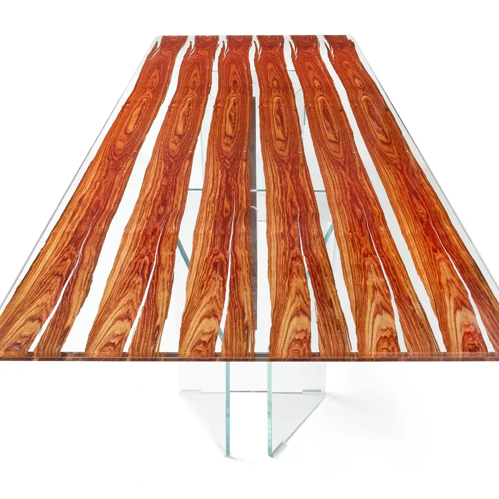 Exuding utmost refinement and a sublime natural flair, this stunning dining table from the exclusive Glass & Wood Collection will make for a singular statement to a sophisticated contemporary interior. Made of laminated glass, it encloses thin sections of rosewood, showcasing mesmerizing grains of unprecedented character. Please refer to the Concierge for further information.