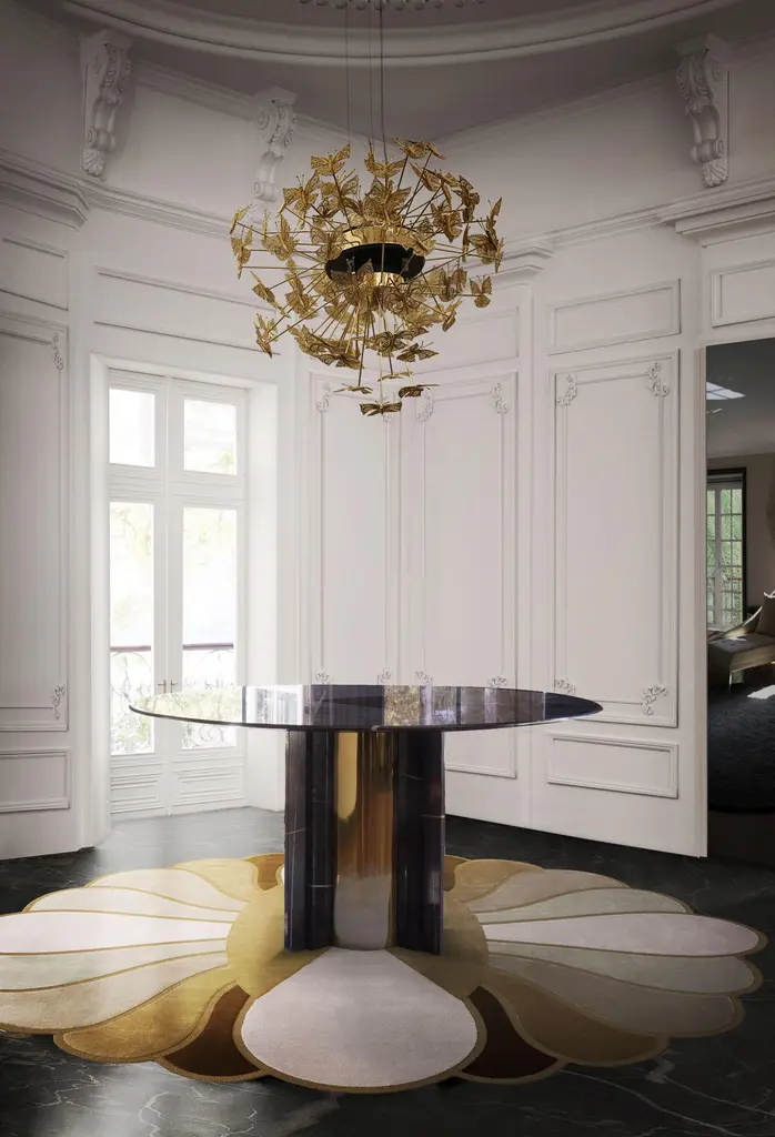 A stunning round Nero Marquina marble top rests upon a tri-point satin brass base creating a simple yet pronounced and elegant dining table. Paris will add a stylish focal point to any dining area.Materials & Finishes: Top: Nero Marquina Marble (Polished)Base: Nero Marquina Marble (Polished)Details: Satin Brass (High Gloss Finish)Clean & Care: Clean polished metal or polished stainless with a damp cloth. Do not use commercial or heavy duty polishes or waxes, as they may scratch or damage the finish. Polishes we do recommend are Brasso, Simichrome, or our favorite Flitz; these can be used without in icting damage even for the unskilled user, unless the polished surface has a wax sealer coat. These polishes will remove the wax while polishing the metal, but the surface would then have to be re-waxed if it is on a metal that needs to be sealed. Glass and crystal can be cleaned by wiping with a soft damp cloth or glass cleaner with no additives. Apply glass cleaner to a soft cloth rather than directly on to the texture to avoid overspray that may damage other finishes.