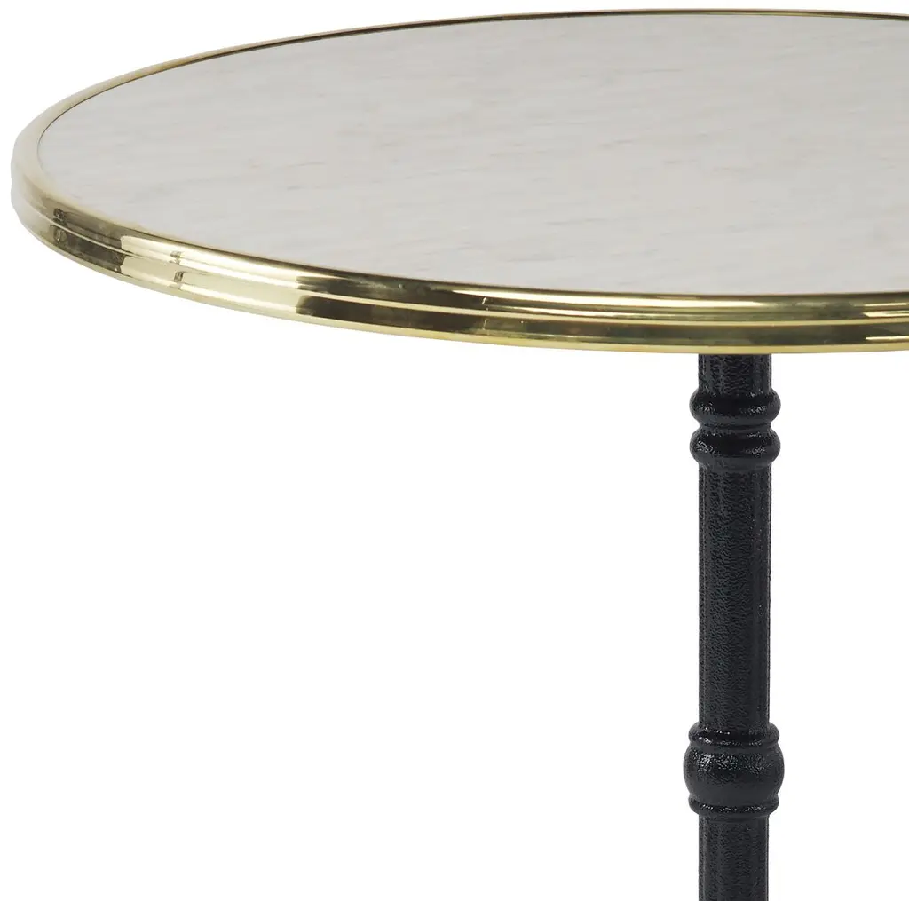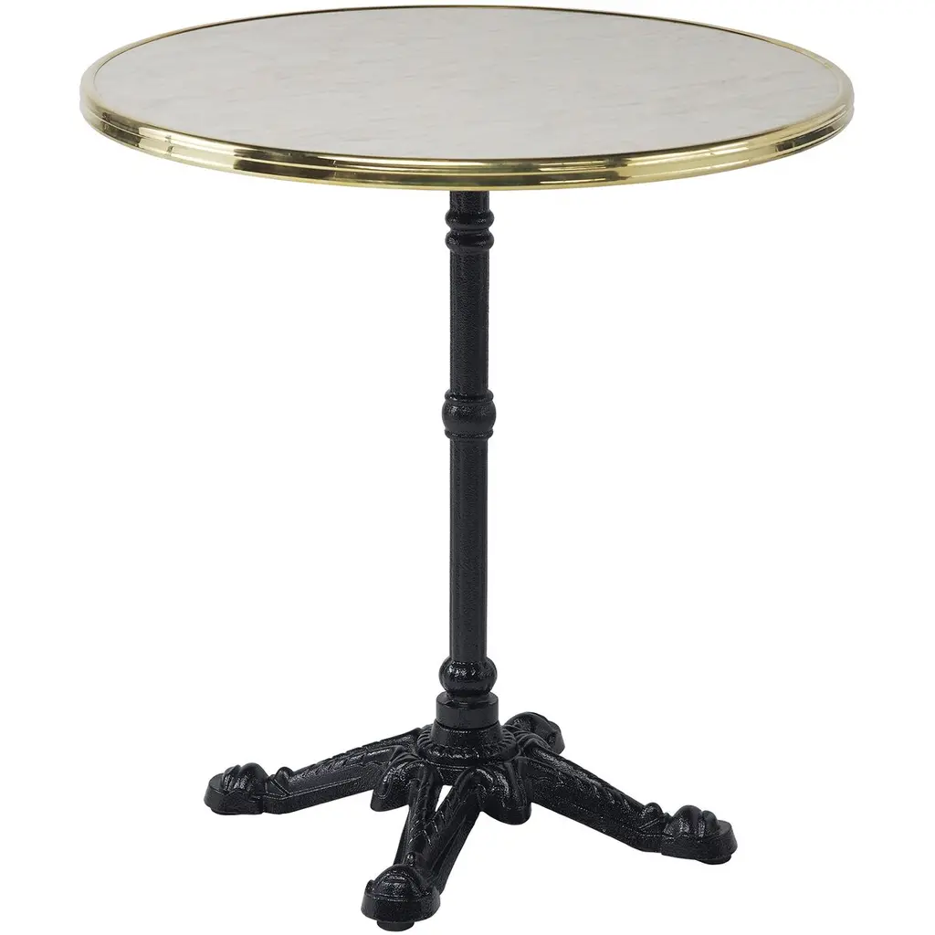 The Rive Gauche Parisian Bistro Tables by Sika Design evoke the enchanting ambiance of 1930s Parisian café culture. Featuring a sturdy powder-coated pedestal and tripod base, each table boasts a round faux marble tabletop adorned with a charming brass edge. The smooth laminate surface is resistant to heat and scratches, effortlessly enduring all weather conditions. Perfect for alfresco dining experiences at sidewalk cafes, brasseries, or restaurants, these tables add a touch of romance to any outdoor setting.
