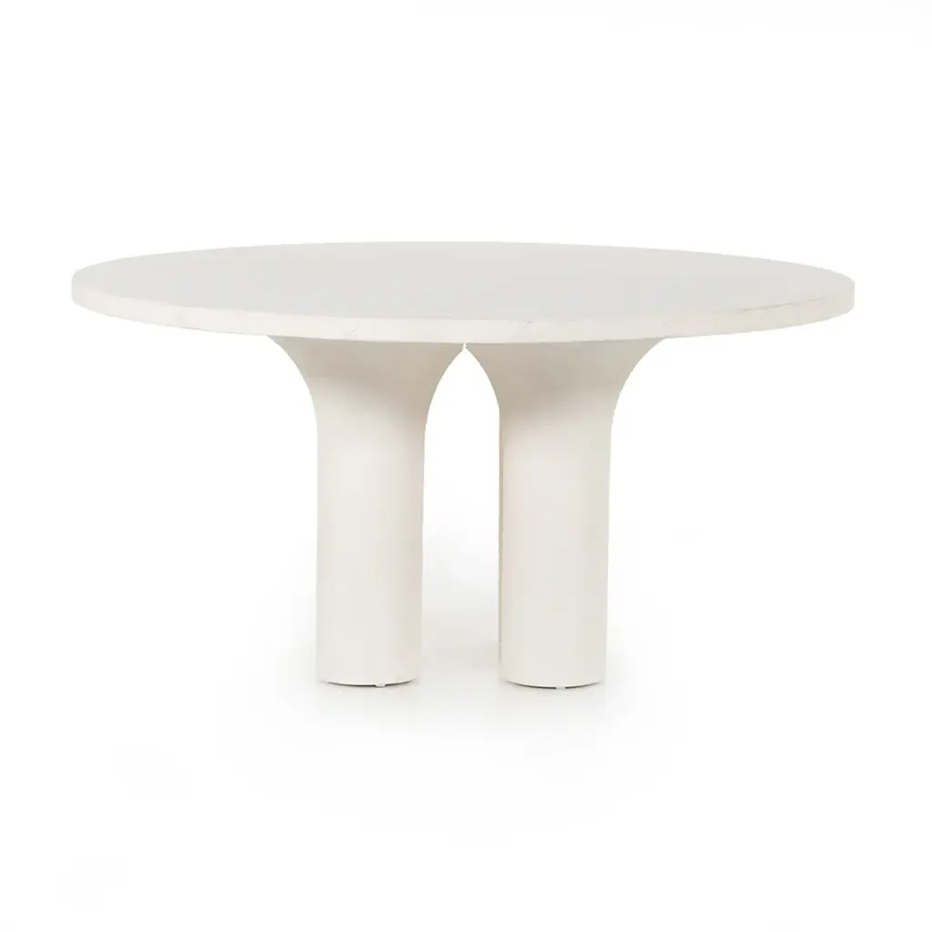 Made from plaster-molded concrete, a cylindrical pillar-style base tapers slightly to support a smooth white-finished tabletop for beautifully complementary texture. Indoors or out; cover or store inside during inclement weather and when not in use. Ships In 10-14 Business Days Concrete construction This image is for illustrative purposes only. The colors shown are accurate within the constraints of lighting, photography, and the color accuracy of your screen.