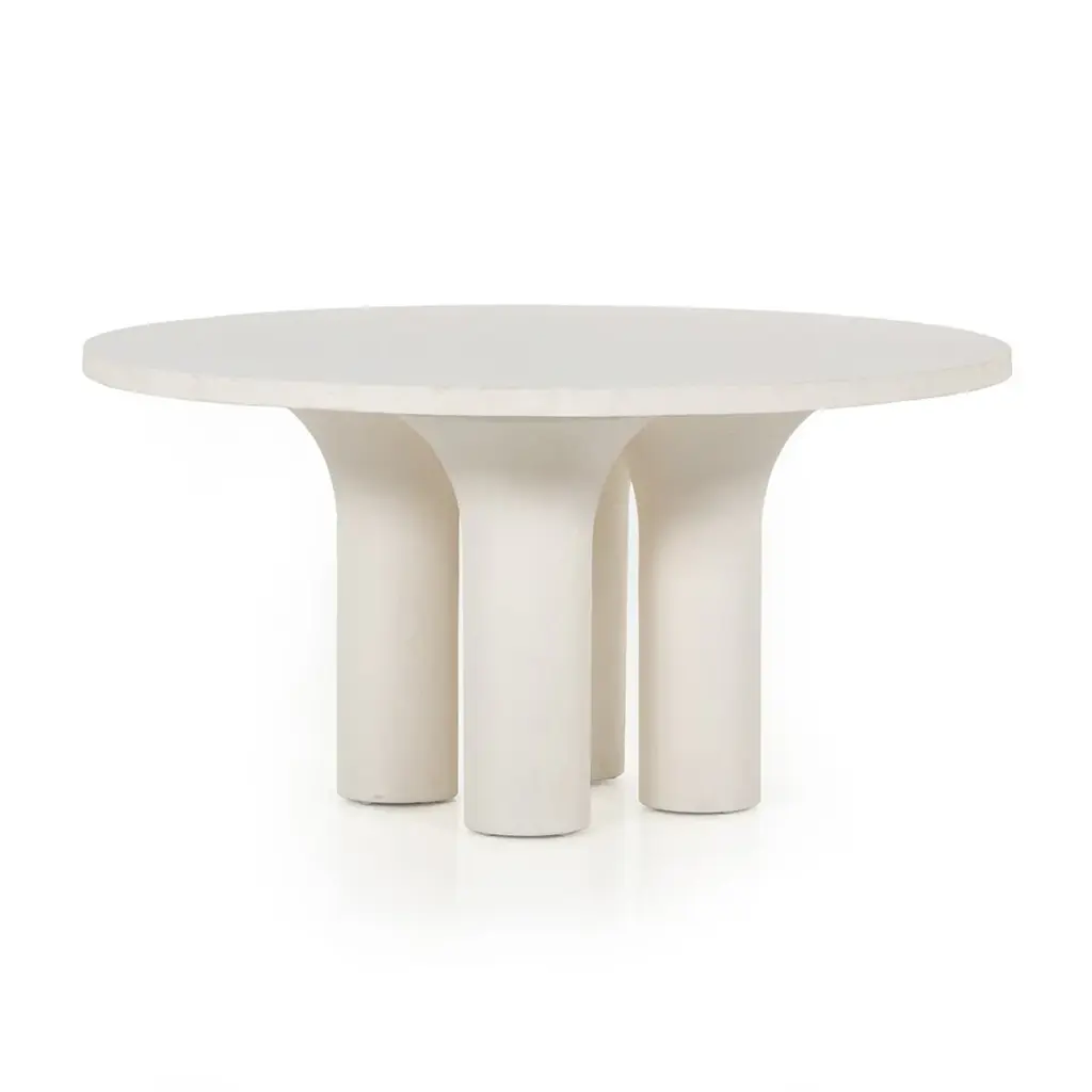 Made from plaster-molded concrete, a cylindrical pillar-style base tapers slightly to support a smooth white-finished tabletop for beautifully complementary texture. Indoors or out; cover or store inside during inclement weather and when not in use. Ships In 10-14 Business Days Concrete construction This image is for illustrative purposes only. The colors shown are accurate within the constraints of lighting, photography, and the color accuracy of your screen.