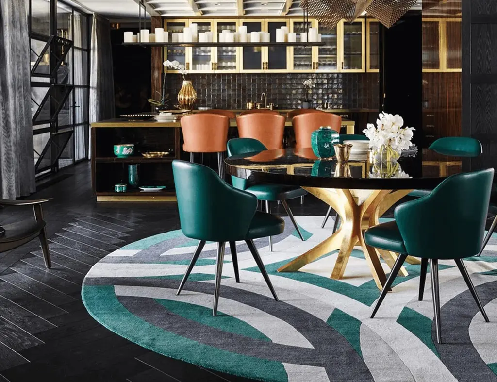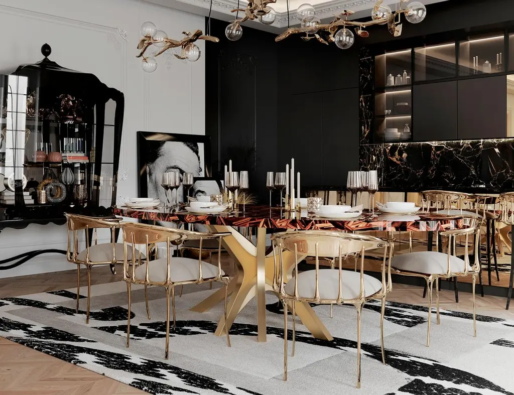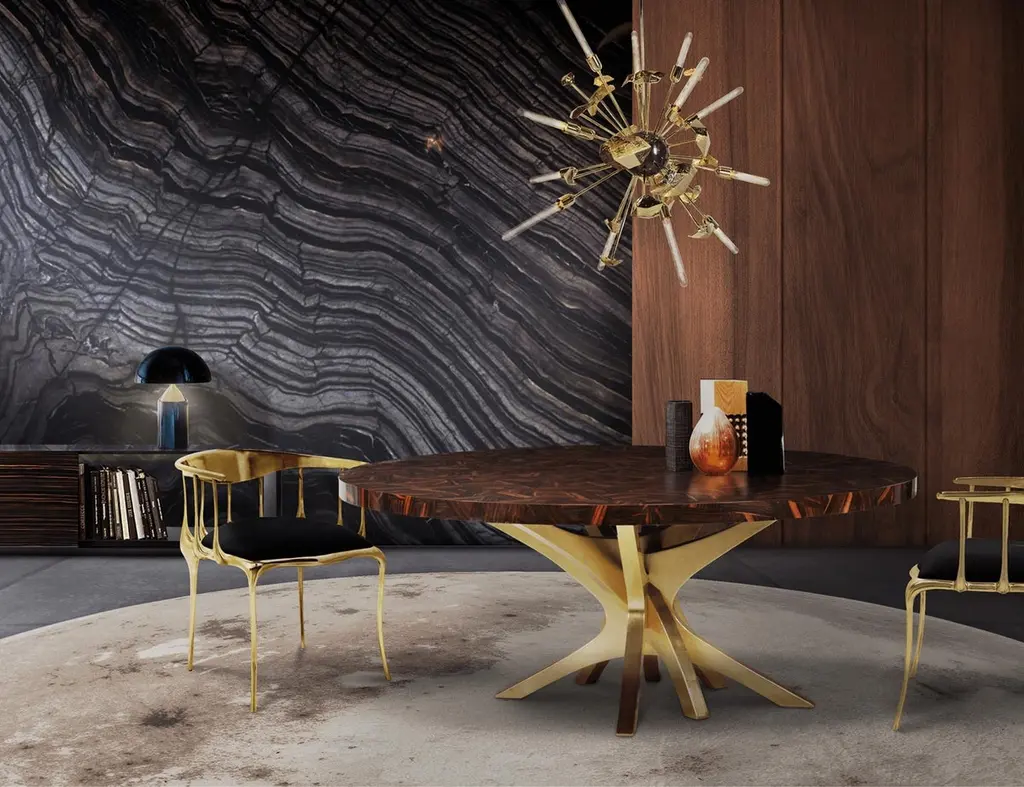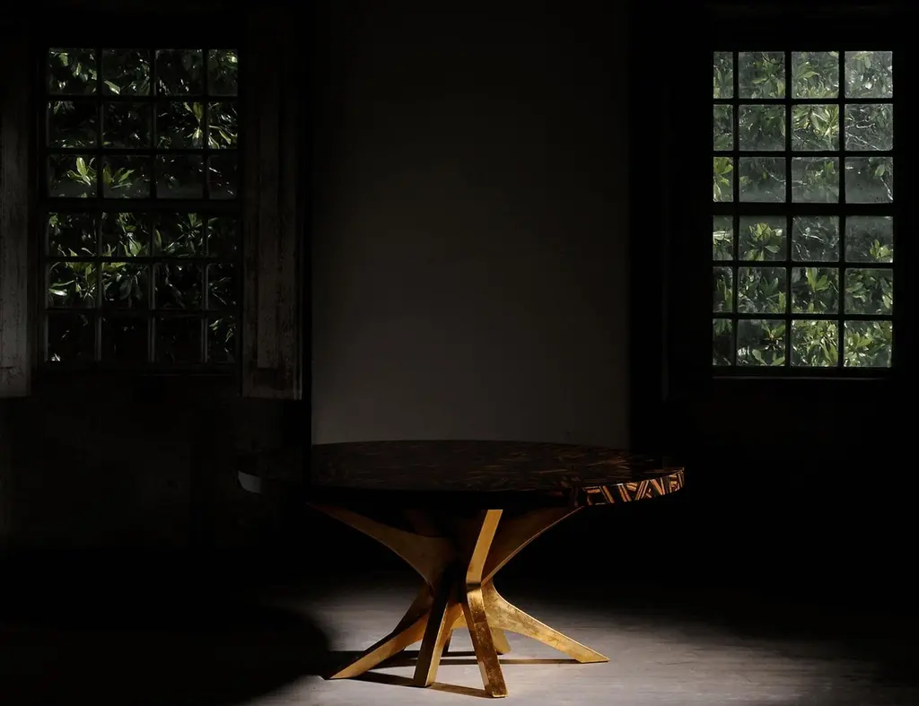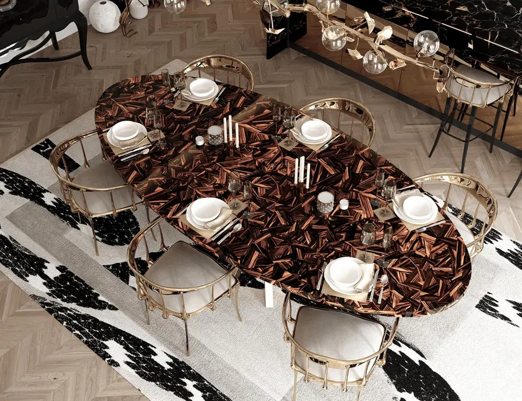 Patch Dining Table - Hand-Crafted Marquetry Ebony, Oak & Gold - Boca Do Lobo