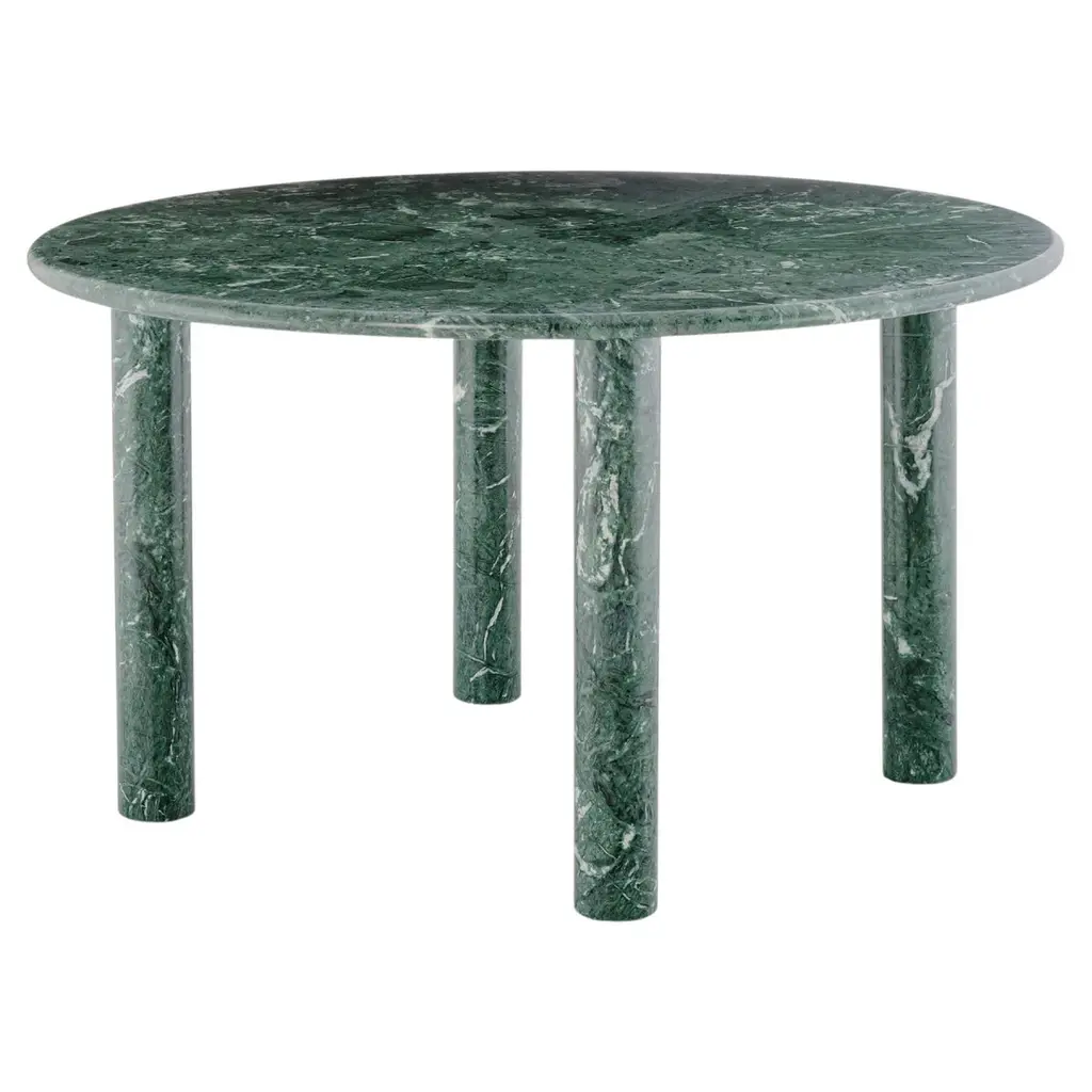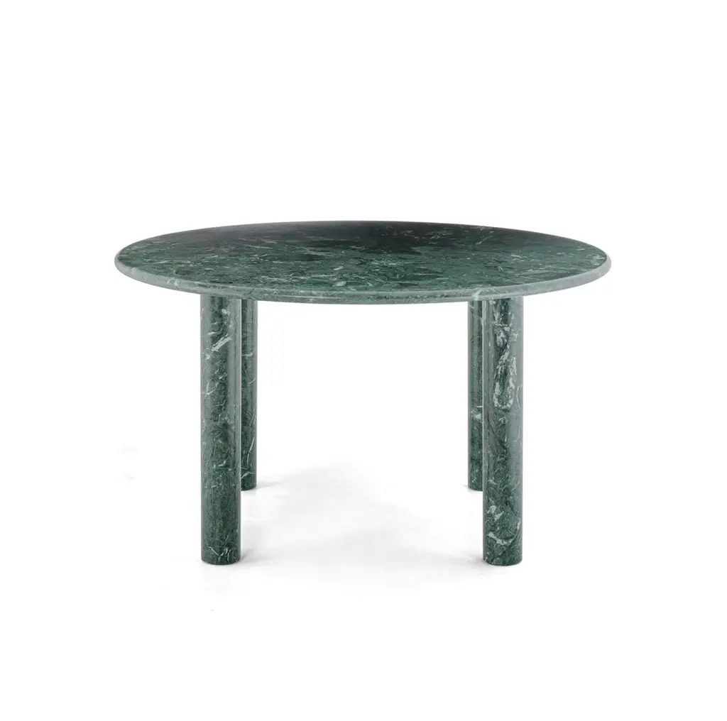 Paul Dining Table Limited Edition of 12 by NOOMDimensions: D 130 x H 75 cm Materials: Green Marble Verde Ocean.Dining table Paul cut off large slabs of green marble designed as a Limited Edition piece. Each piece’s pattern and texture are unique, making it a sought-after collector’s item. The table's design is a "tribute" to the influential German architect, illustrator, and furniture designer Bruno Paul, who is recognized for his Typenmöbel, standardized furniture that was simple, practical, and elegant. At NOOM we espouse the same progressive aesthetic and functional approach to design, thus the "Paul" table with its restrained appearance is about honoring pragmatic modernism and celebrating comfort, cleanliness, and natural materials. The conscientiously designed and carefully manufactured "Paul" table with its very straightforward, but welcoming appearance was conceived as the universal table to suit any interior style.About, NOOM is a leading design brand from Ukraine. Working at the intersection of art and craftsmanship, driven by a curiosity for testing new materials, finishes, and techniques, NOOM produces eye-catching furniture, lighting, mirrors and décor for private and commercial interiors, including cutting-edge collectable design pieces. Balancing between expression and function, NOOM is a place where design meets art. The company was founded in 2017 by industrial designer Kateryna Sokolova, with designer, and entrepreneur Arkadii Vartanov. Arkadii and Kateryna teamed up to bring together the very best of design, materials, and craftsmanship. Combining traditional and modern manufacturing technologies, NOOM aims to design functional and striking products that are "built to last". "Our objects lie between design, art, and craftsmanship," said the designers. "Managing the manufacturing of our creations, we oversee the entire production process and pay exceptional attention to every detail in each piece”.
