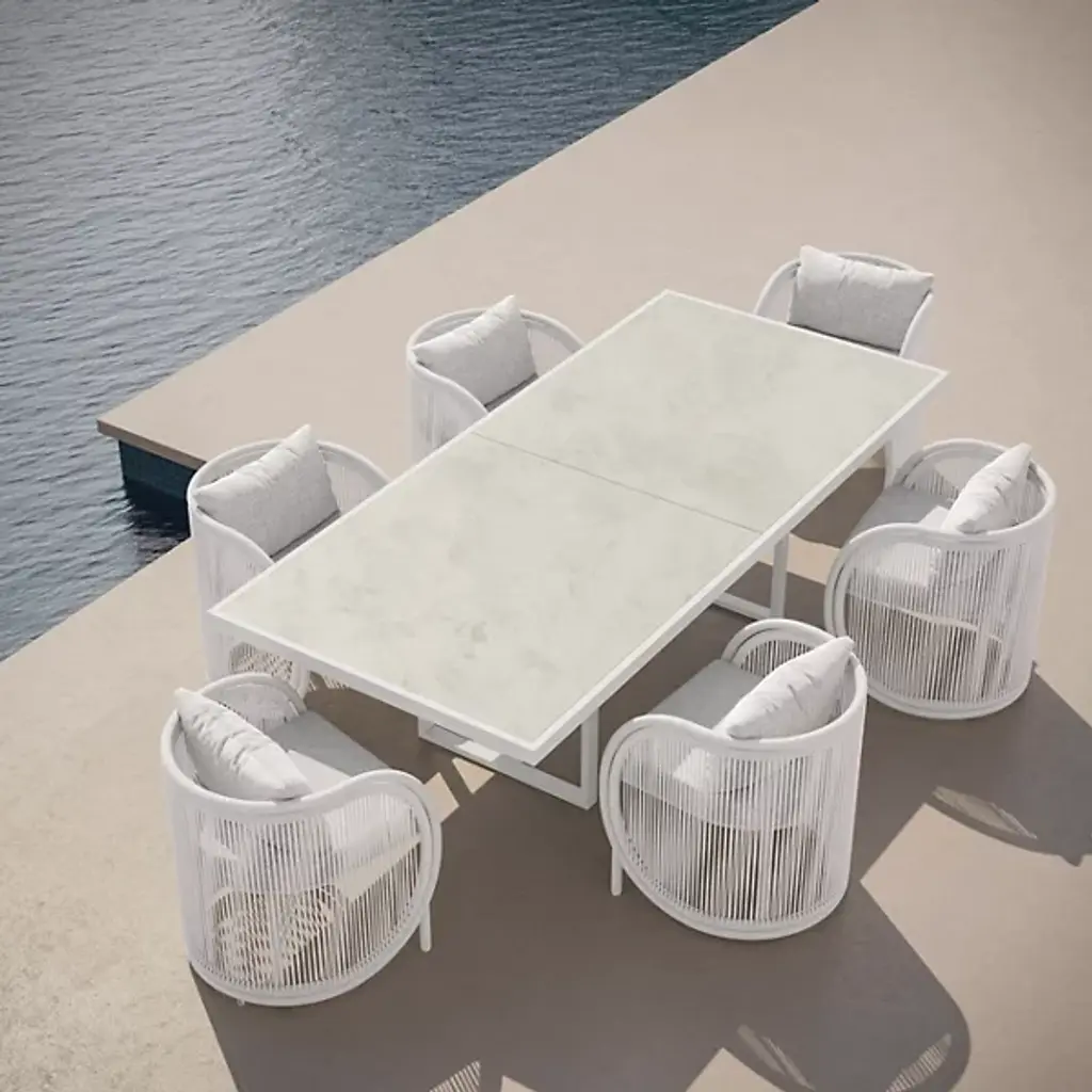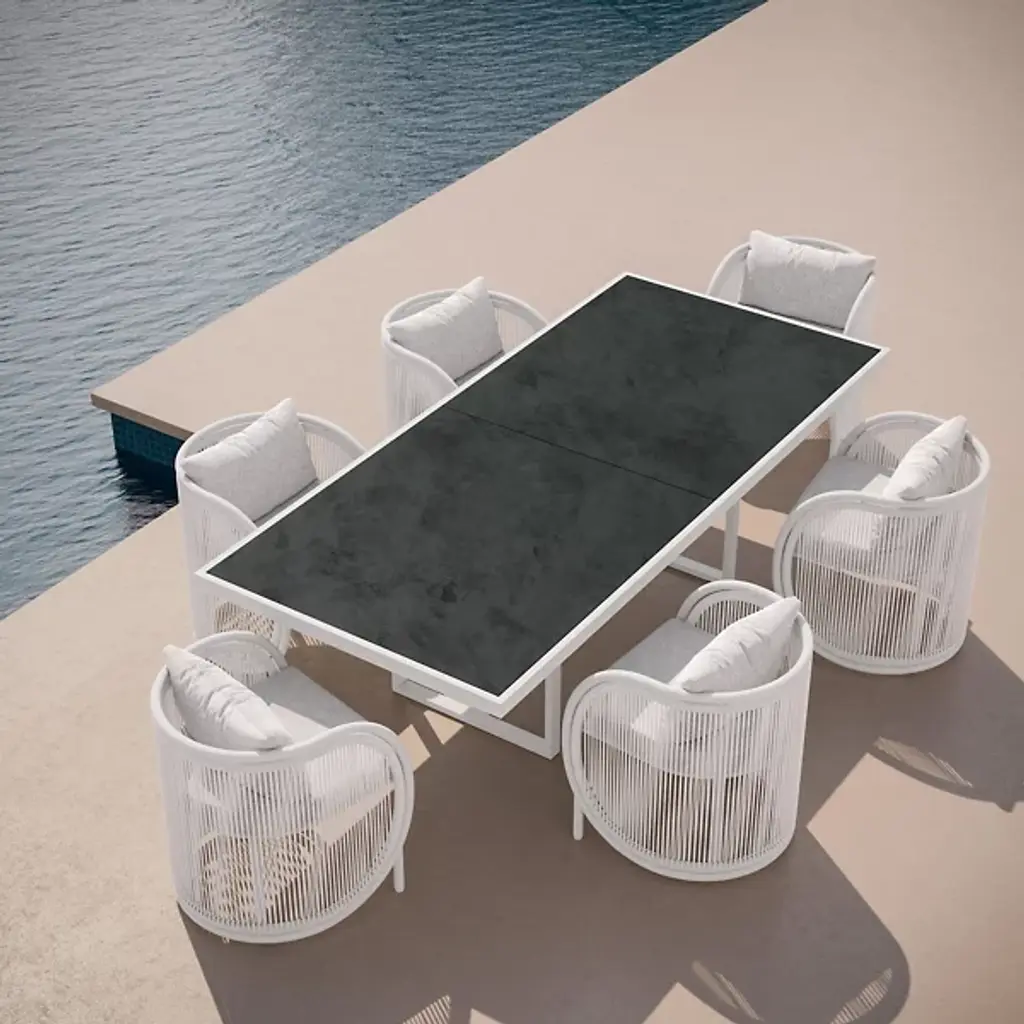 The Pavia Dekton Rectangular Outdoor Dining Table from Azzurro Living emphasizes expansive family gatherings with its generous rectangular surface and understated frame design, which maximizes seating capacity. A fully welded powder-coated aluminum construction creates the structural framework while Dekton tabletops provide exceptional durability and easy maintenance for extended outdoor use. Individual artisan craftsmanship ensures that each table receives careful attention through hand-welding, bending, and finishing processes that utilize advanced techniques. The ultra-compact stone solution offers comprehensive weather resistance for various outdoor dining applications.