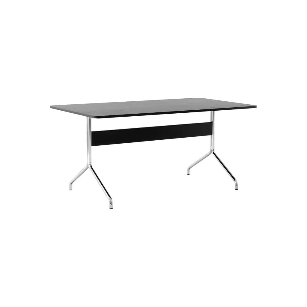 While minimalist, the Pavilion series is rich in subtle detail, making a splendid addition in the dining table available in a trio of sizes. A rectangular surface rests on gracefully angled bent-steel tubes — the larger mid-size version ideal for office meeting or dining room while the smaller, 4-person model is perfect for the home. The table can also be optionally paired with the Pavilion desk, offering the tabletop in a choice of rich oak, walnut or black lacquer finishes and the base in matte black or chrome.