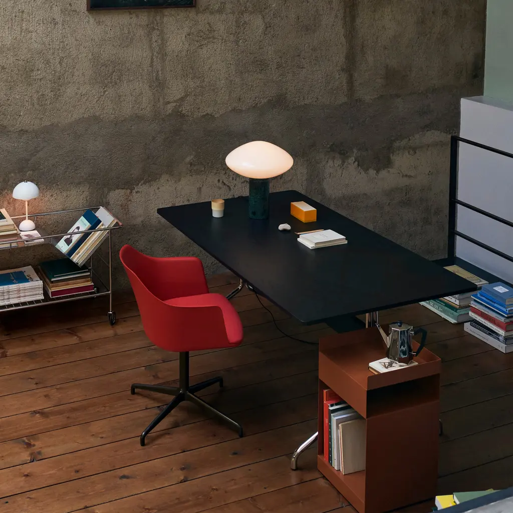 Elevate your dining experience with the Pavilion Dining Table from &tradition. Available in three sizes, the larger version is perfect for hosting office meetings or dinner parties, while the smaller option adds sophistication to any compact dining room or apartment home. Pair with the Pavilion desk for a cohesive look, and easily manage cables with the convenient stretcher location. Highlights