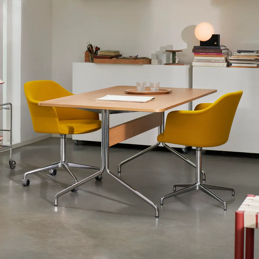 Elevate your dining experience with the Pavilion Dining Table from &tradition. Available in three sizes, the larger version is perfect for hosting office meetings or dinner parties, while the smaller option adds sophistication to any compact dining room or apartment home. Pair with the Pavilion desk for a cohesive look, and easily manage cables with the convenient stretcher location. Highlights