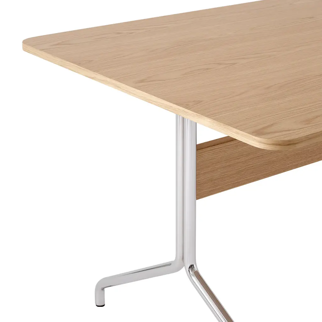 Available in three sizes, the larger, six or eight-person Pavilion table is ideal for an office meeting room or dining space while the smaller, four-person version is a perfect addition to the home. The table can be matched with the Pavilion desk to provide a cohesive design experience, and cable management can be easily inserted into the table due to the location of the stretcher.