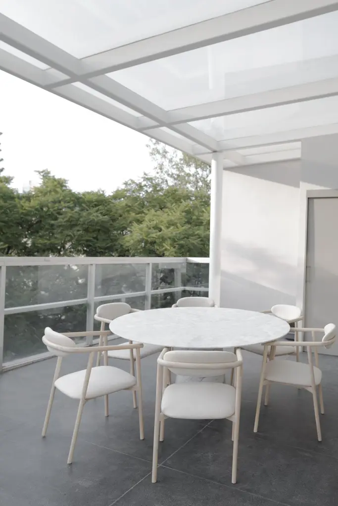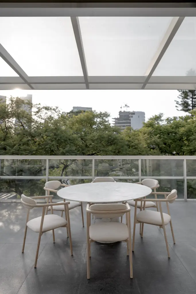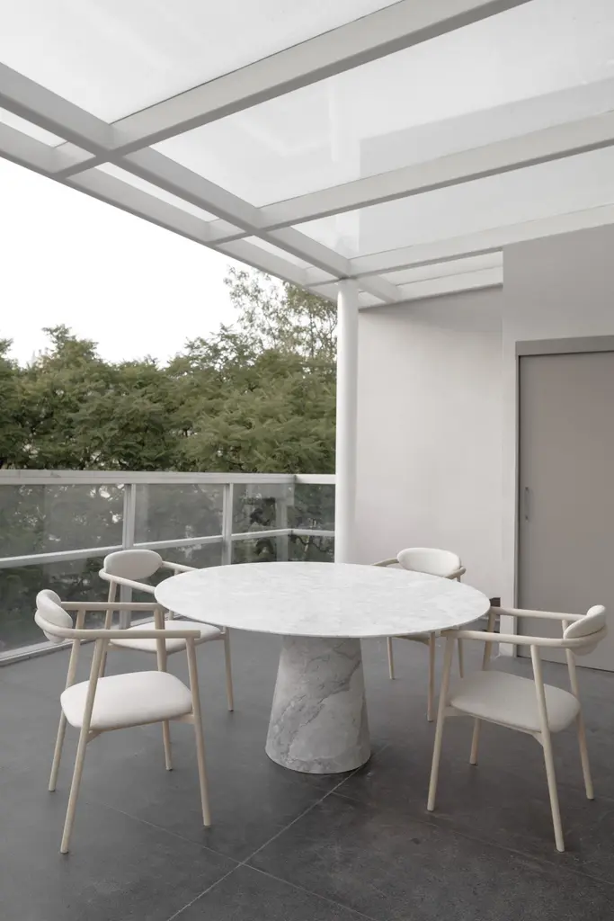 Dining table in carved Veneciano white marble. Handmade in Mexico. Production time: 6-8 weeks for items without marble / 13-14 weeks for marble pieces. Shipping +10 additional business days. Casa Quieta uses natural materials such as woods, stones, fabrics etc. These materials may vary in tone, veining, and cavities due to their natural origin. This is part of the inherent beauty of materials and is not considered a flaw. Due to the artisan nature of our production process, there is a +/- 3mm measurement tolerance.