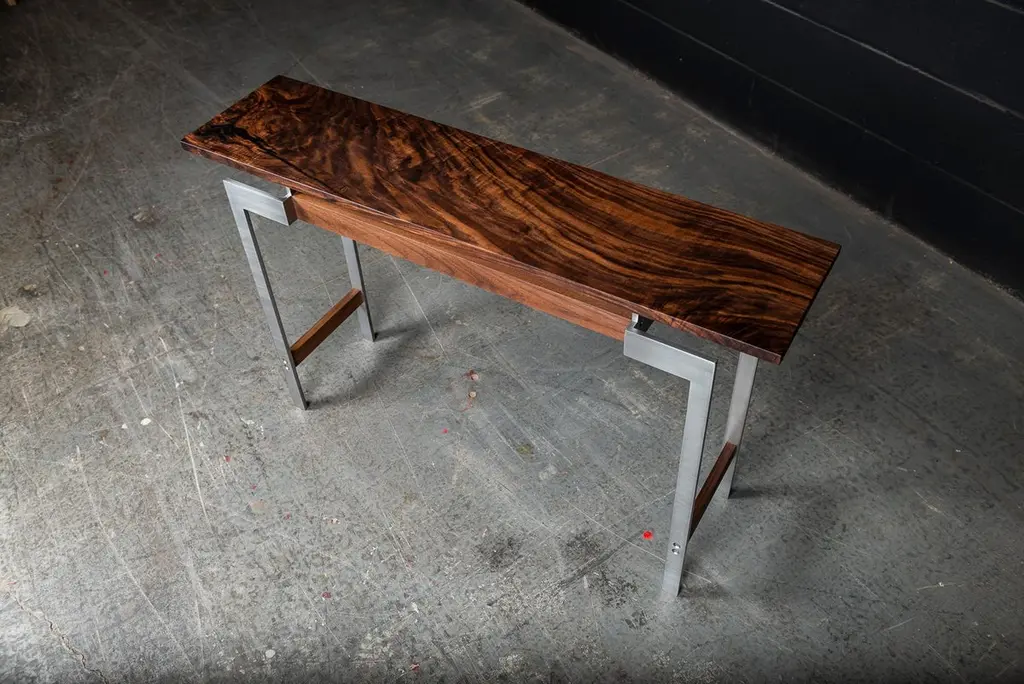 Pembroke Console Table By Ambrozia, Solid Claro Walnut & Stainless Steel