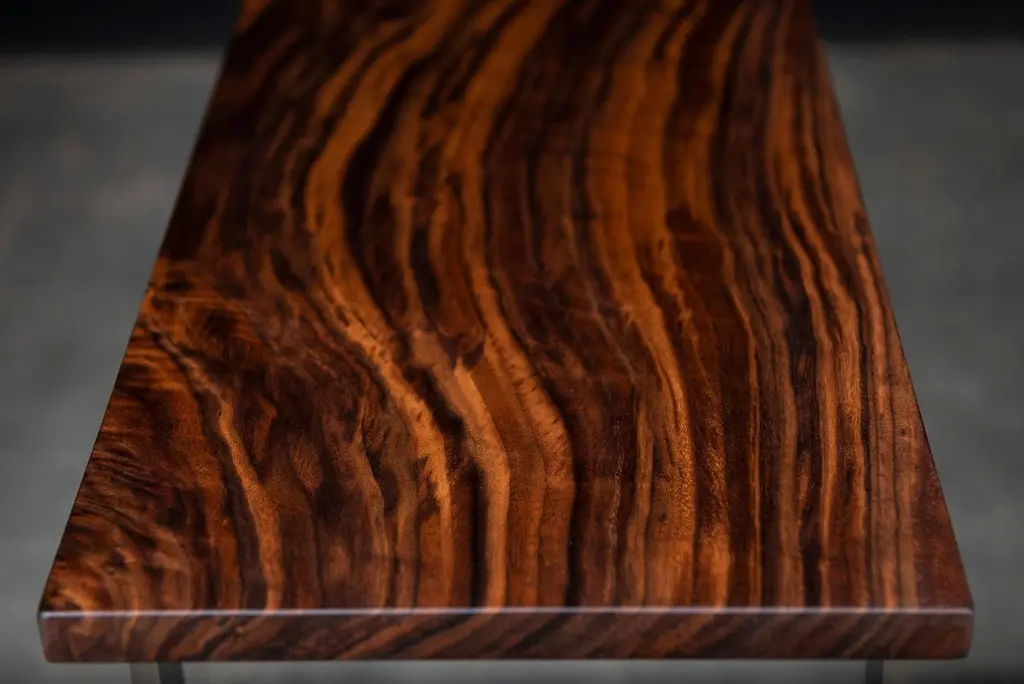 The Pembroke console table is handmade to order from an hand selected high figured Claro Walnut with an hand rubbed natural oil and wax finish that enhance the real beauty of the wood and give a natural warm touch. The elegant style came from our unique Pembroke legs design offered in differents finishes. Shown above in hand brushed stainless steel finish. The symbiosis of the rich high figured wood grain and the contemporary line result in a real eye catcher piece of art for your home entryway or hallway, your bedroom, your home kitchen, your dining room, your business office or even an hotel corridor.All the subtle details and unique shapes will give you ever-increasing emotions. Contemplating this unique organic wall console will remind you of the strength and beauty of the nature that surrounds us and will inspire you in your everyday life.This item is made to order in our workshop or studio in Canada, you can inquiry for a custom sizing in various wood species and finishes. This authentic Ambrozia piece is signed by our branded solid brass medallion.