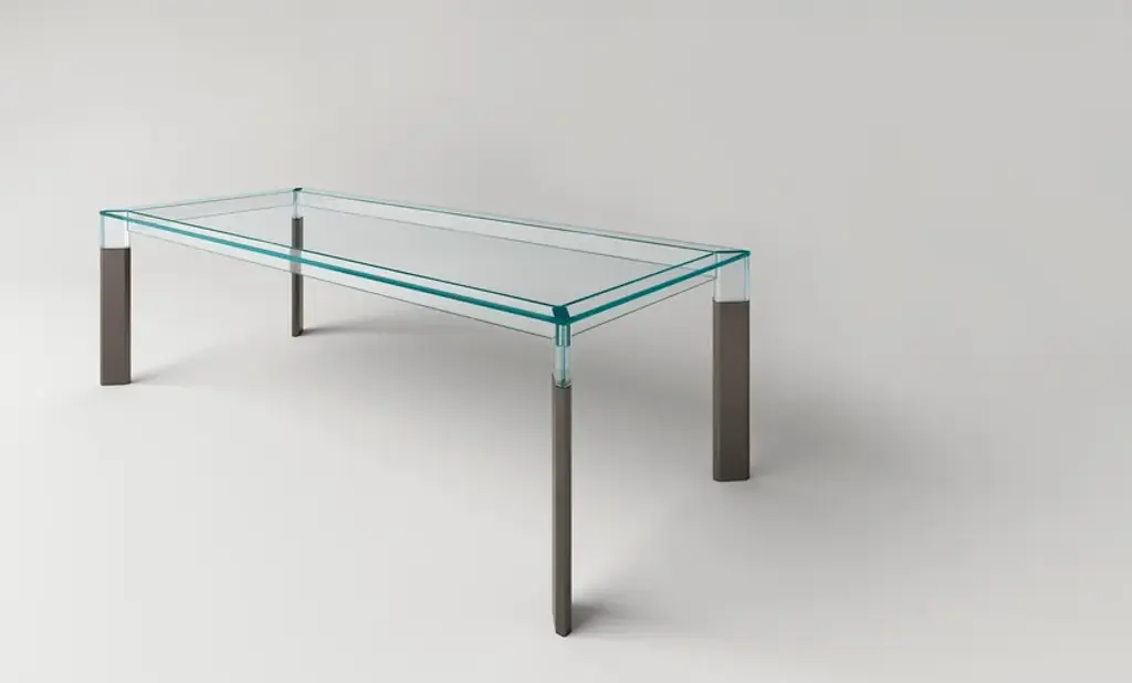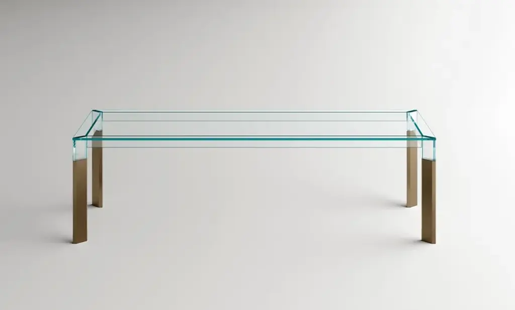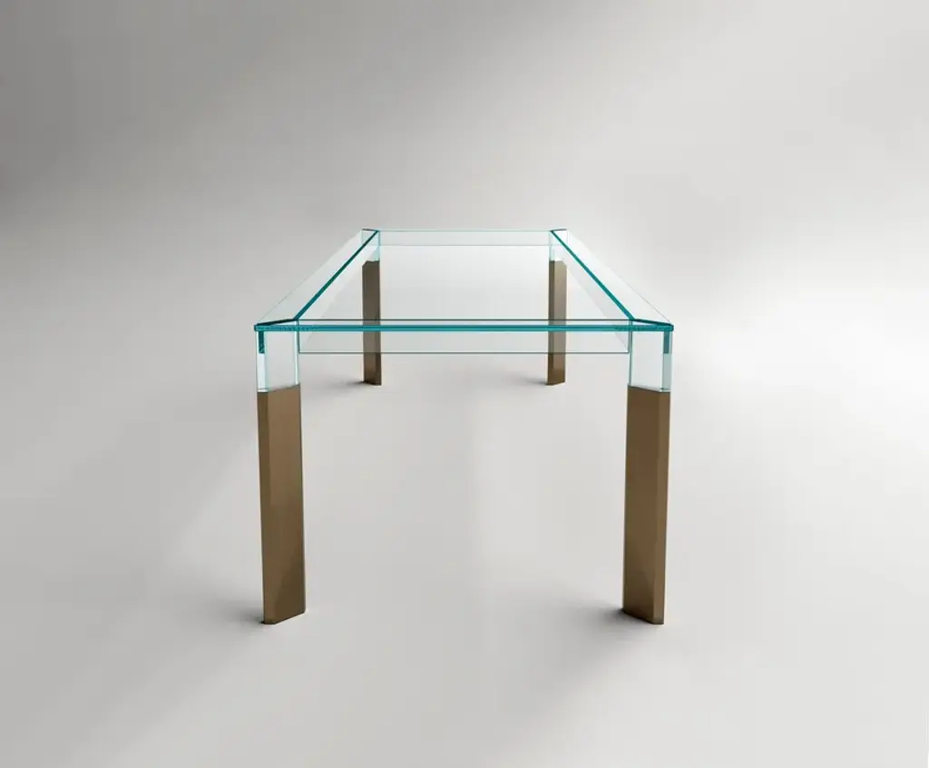 Great protagonist among our tables, Perseo always knew how to enhance the combination of glass and other materials, thus gaining in versatility in its use. Complex construction techniques, obtained by the ability of our artisans, are to be seen in its elegance. Beyond the already available finishes, two new brushed finishes for the legs are added that make Perseo a timeless table, adaptable to different styles. TECHNICAL INFORectangular or square table in extra clear glass. Removable legs in the new finishes matt brushed Antracite or Ottone.