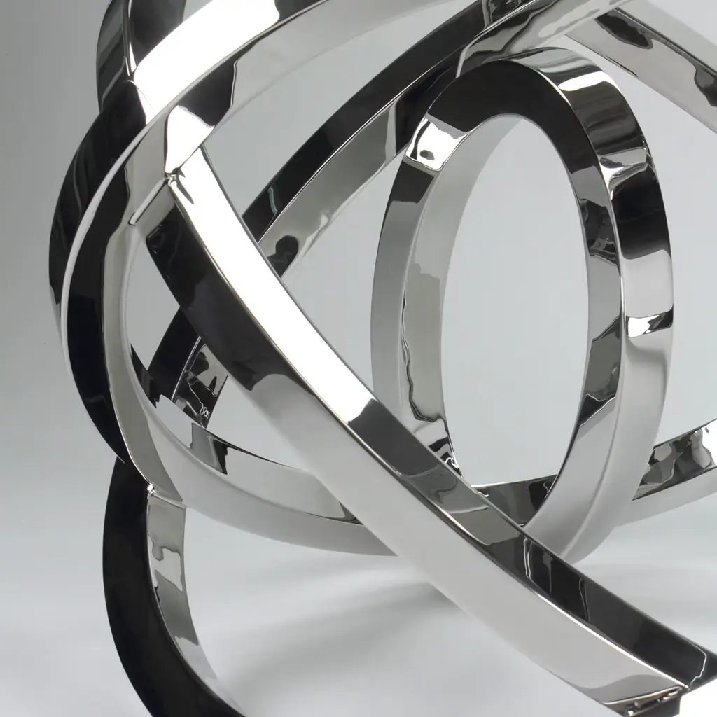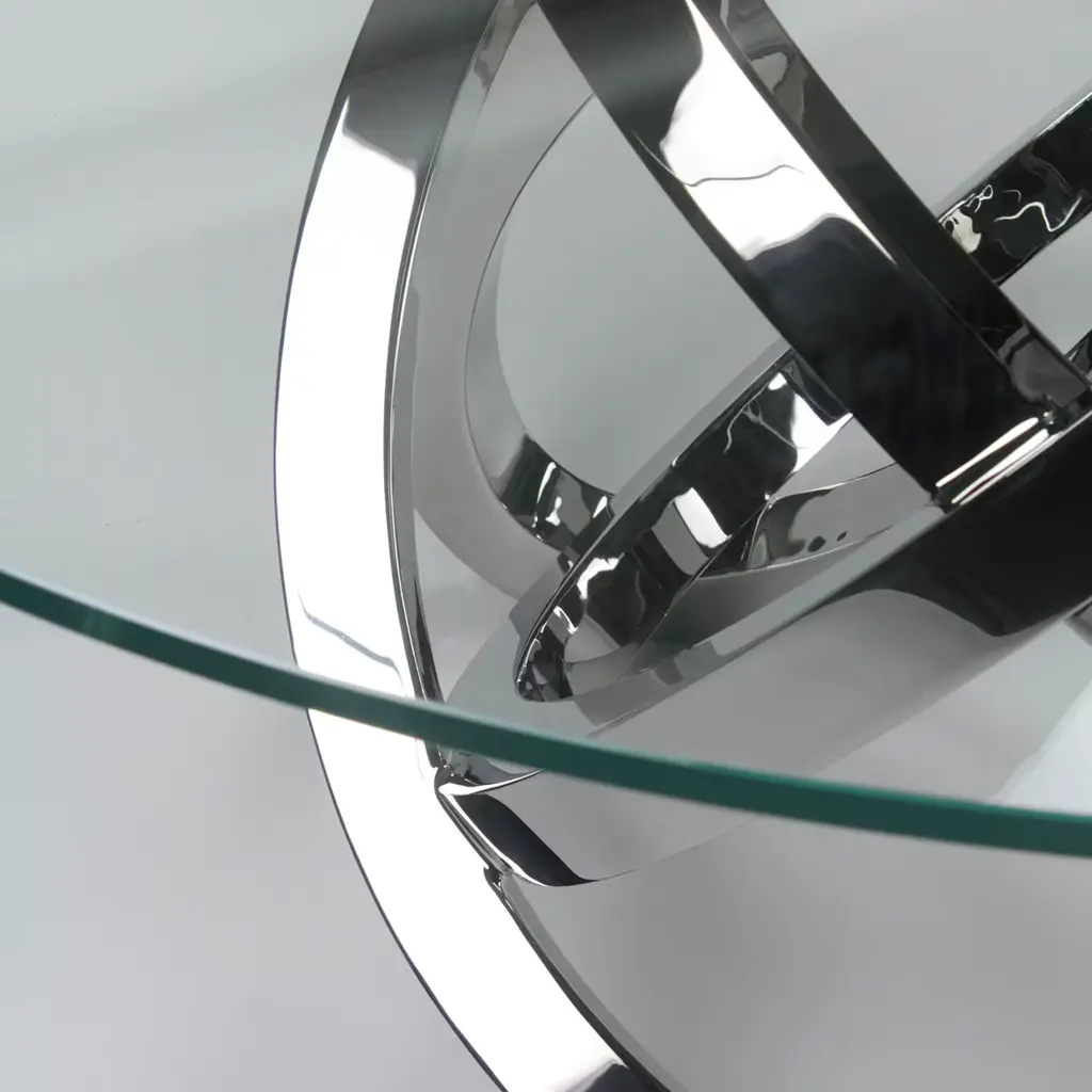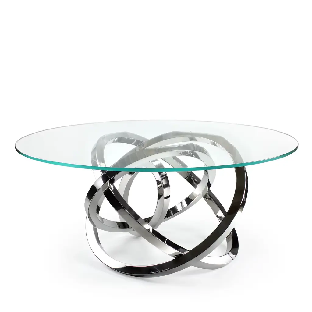 The dining table Perseo is an eye-catching table with a structure in mirror-polished stainless steel and a top in extra-clear tempered glass. Every single bangle is welded and highly polished by hand. The mirror-like finish of the steel creates different perceptions of this particular material and allows interesting reflections of light. Each table is hand signed and numbered by the artists (engraved). 100% handmade in Italy, comes with a "Certificate of Authenticity." Limited Edition of 30.
