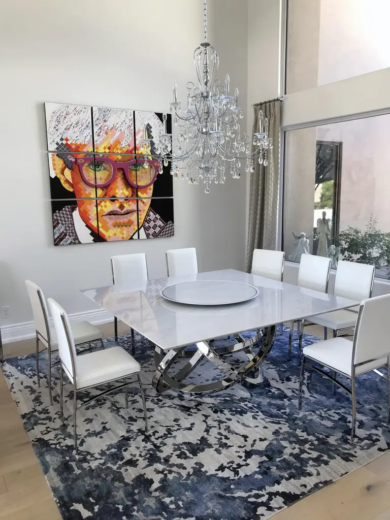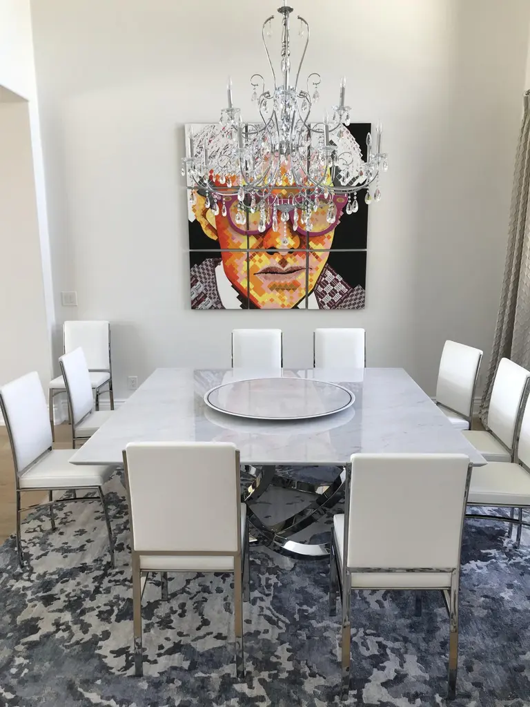 Perseo Marble Dining Table by Barberini & GunnellLimited Edition of 30Dimensions: D 175 x W 175 x H 75 cm.Materials: Marble, mirror polished stainless steel.Limited Edition, signed and numbered by the artists, comes with a Certificate of Authenticity.Barberini & Gunnell, founded in 2009 in Ancona, Italy by architects Francesco Barberini and Nina A. Gunnell, is the result of a philosophy, thinking of design and architecture as a work of art. The architectural and interior design activity carried out by ‘The Studio’ complements the creations of ‘The Atelier’, which are the result of an artistic playground and highly skilled craftsmanship, a place where artworks and sculptures come to life.The Studio Barberini & Gunnell designs high-end residential and retail spaces that are out of the ordinary and beyond fashion. Barberini & Gunnell creates refined, timeless, and harmonious environments by inserting collectible design, “talking pieces” that create unique and bespoke homes according to the client’s eclectic and aesthetic desires.The Atelier Barberini & Gunnell creates artworks and collectible designs, one-off pieces, and limited editions for a small niche of high-end projects; bespoke solutions for luxury and ultra-luxury projects all over the world.The choice of the most precious materials, the maniacal cure for detail is the basis of our modus operandi aiming to create timeless pieces, using marine grade stainless steel, brass, cast bronze, precious wood essences, marbles, onyxes, semi-precious gemstones, crystal glass, together with the most sophisticated technologies and quality craftsmanship.This allows us to work for clients like Four Seasons Hotels, The Ritz Carlton, Regent Seven Seas Cruises, Louis Vuitton, Cartier, Dior, Paramount Pictures, Peter Marino Architects, Sotheby’s, Bonhams, Foundation of Maestro Andrea Bocelli, Ridley Scott (House of Gucci) besides our private collectors and clients.Values such as sustainability, the use of natural materials, the rediscovery of eco-sustainable craftsmanship, and the protection of refined and ancient techniques that are increasingly being lost are the basis of the design.Barberini & Gunnell’s signature works are exhibited at international art fairs such as Art Basel Design//Miami, Art Miami, Art Basel Switzerland, PAD London, PAD Genève, PAD Paris, PAD Monaco, Salon Art+Design New York…